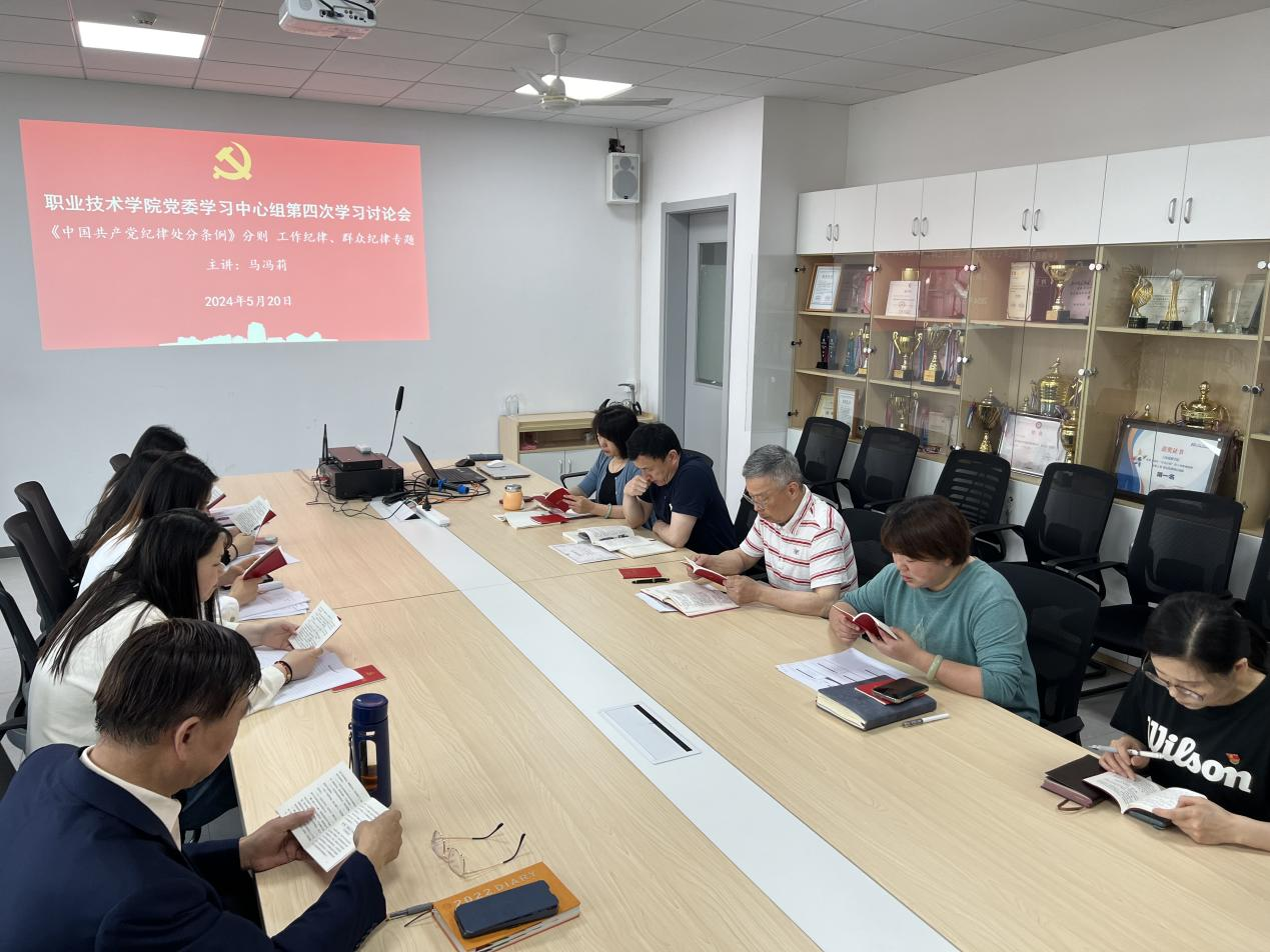 2024年5月20日下午,职业技术学院党委学习中心组第四次集体进行专题学习讨论,党委书记王加宁首先介绍了本次中心组学习的主要内容为《中国共产党纪律处分条例》中第九章和第十章的内容,包括“对违反群众纪律行为的处分”和”对违反工作纪律行为“相关内容。院党委副书记马冯莉领读了该两章具体内容,并根据内容结合工作实际做了主要发言,与会成员结合工作实际作即兴交流发言,通过学习,中心组对党的群众纪律和工作纪律有了深层次的理解和体会。