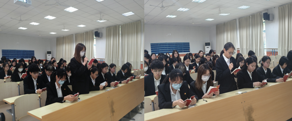 最后,为切实引导入党积极分子学纪、知纪、明纪、守纪,刘老师组织全体学员对标党员要求,力求原原本本、逐章逐条学习加深对《中国共产党纪律处分条例》的学习和认识。学员们严肃以待,句句铿锵有力,有效促进纪律规矩印刻在心,将“铁”的纪律真正转化为日常习惯和自觉遵循。