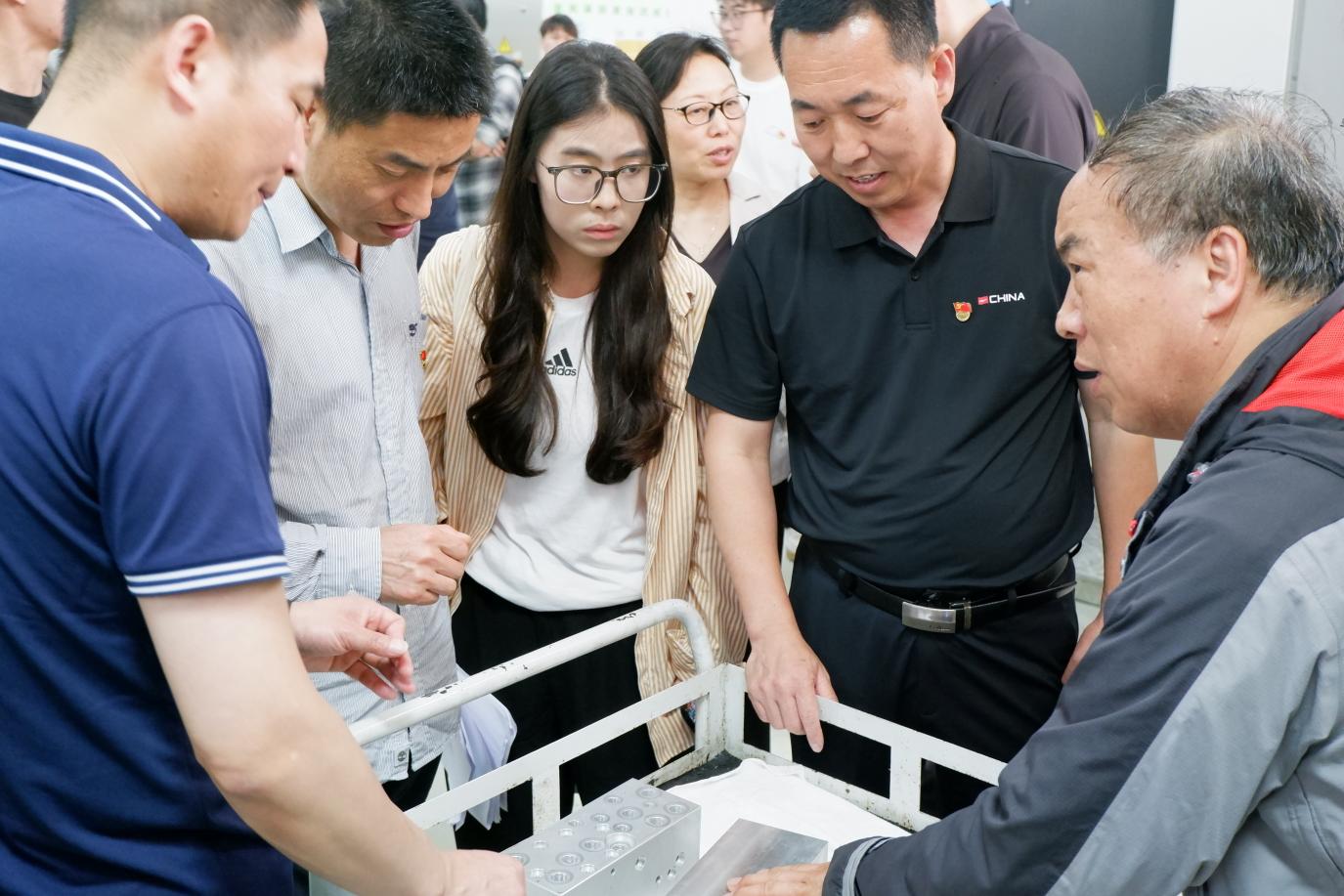 师生们认真观看,不时询问技术问题。大家交口称赞公司的创新产品,仔细询问主要工艺流程,纷纷点赞现场工人的精湛技术。机电学院机械系学生党支部部分学生党员、知行杯社会实践考察小组成员对两位劳模作了专题采访与交流,纷纷表达了向劳模学习的心愿和志向,认为今天参观考察有胜读十年书的收获,从两位两位劳模身上学到了做人做事的精神品质。老师们纷纷表示要好好整理今天参观的素材,及时把新质生产力最新发展成就和典型劳模精神融入思政课课堂,讲好讲活思政课。两个党支部书记表示一定加大党建工作力度,提高党员工作积极性,提升党建促教学质量。