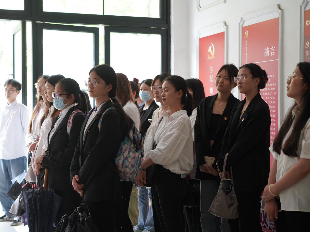 随后,全体毕业生党员一起参观了学院“学纪、 知纪 、明纪 、守纪”党纪学习教育专题展板。杜书记带领毕业生党员深入学习了本次党纪学习教育展三个篇章的内容,帮助毕业生党员明确党纪学习的重要性,让纪律意识不仅在校期间入脑入心,还要带入社会走深走实。