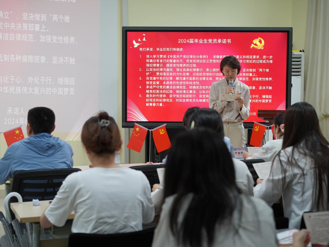 本次活动承载着学院对全体毕业生党员的热切期盼与美好祝愿,是一次深刻的党性教育和纪律教育。在今后的人生道路上,要始终坚定理想信念,坚守奋斗目标,认真学习党的纪律,在离开校园、步入社会后,更要时刻铭记党员的使命和担当,始终做到传承初心,守纪于心,用青春和热血书写新征程。