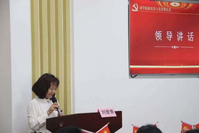 刘爱香书记对新党员的加入表示了热烈的欢迎和祝贺,并代表学院党委对新党员同志提四点希望:一是坚定理想信念铭记党员使命,二是加强理论学习提高党性修养,三是勇于争先创优敢于担当作为,四是加强党纪学习增强规矩意识。刘爱香书记表示,作为党员,我们要牢记党的宗旨,坚定不移地坚持共产主义思想,牢固树立马克思主义的世界观、人生观和价值观,不断增强大局意识,加强党性修养。在日常学习、工作、生活中,每一言一行都要以党员的标准严格要求自己。刘爱香书记还指出,作为党员,要勇于担当,积极践行共产党人的神圣使命,自觉学纪、知纪、明纪、守纪,把遵规守纪刻印在心落实于行,将个人成长与国家发展紧密结合在一起,以实际行动践行全心全意为人民服务的宗旨。