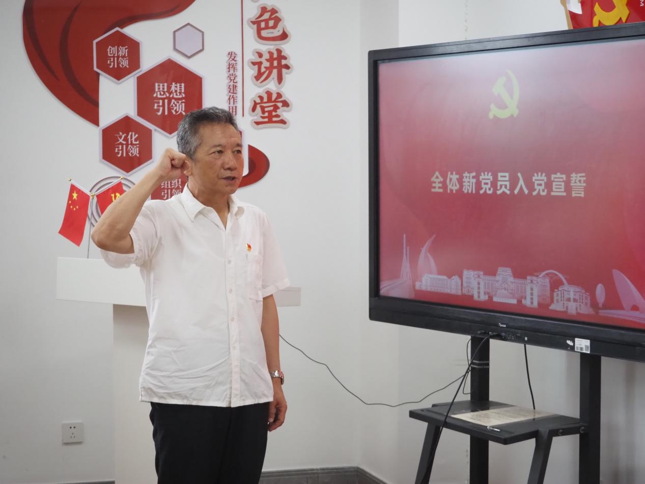 周书记带领新党员在党旗下庄严宣誓,一声声为共产主义奋斗终生萦绕耳际。新党员代表钱季婷向党组织表决心:第一,坚定理想信念,不断增强党员意识,加强党性修养。第二,强化理论学习,自觉用习近平新时代中国特色社会主义思想武装头脑。第三,努力创先争优,做一名思想作风过硬、积极开拓奋进的合格党员。