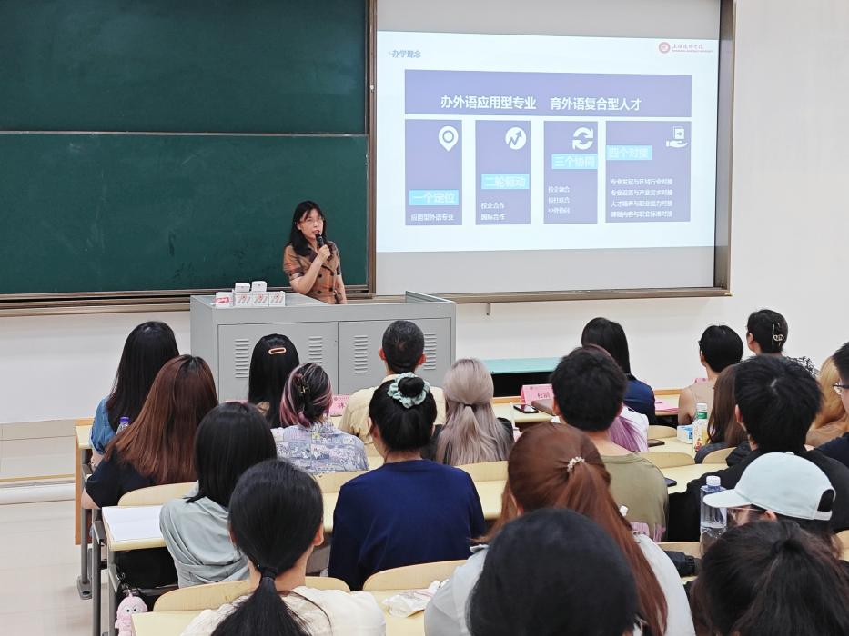 随后,王海燕副院长从外国语学院的发展历程、办学特色、专业课程、国际合作项目、专业竞赛、就业前景等多维度为新生们深入解读所学专业,帮助新生们明确专业方向,激发学习兴趣。