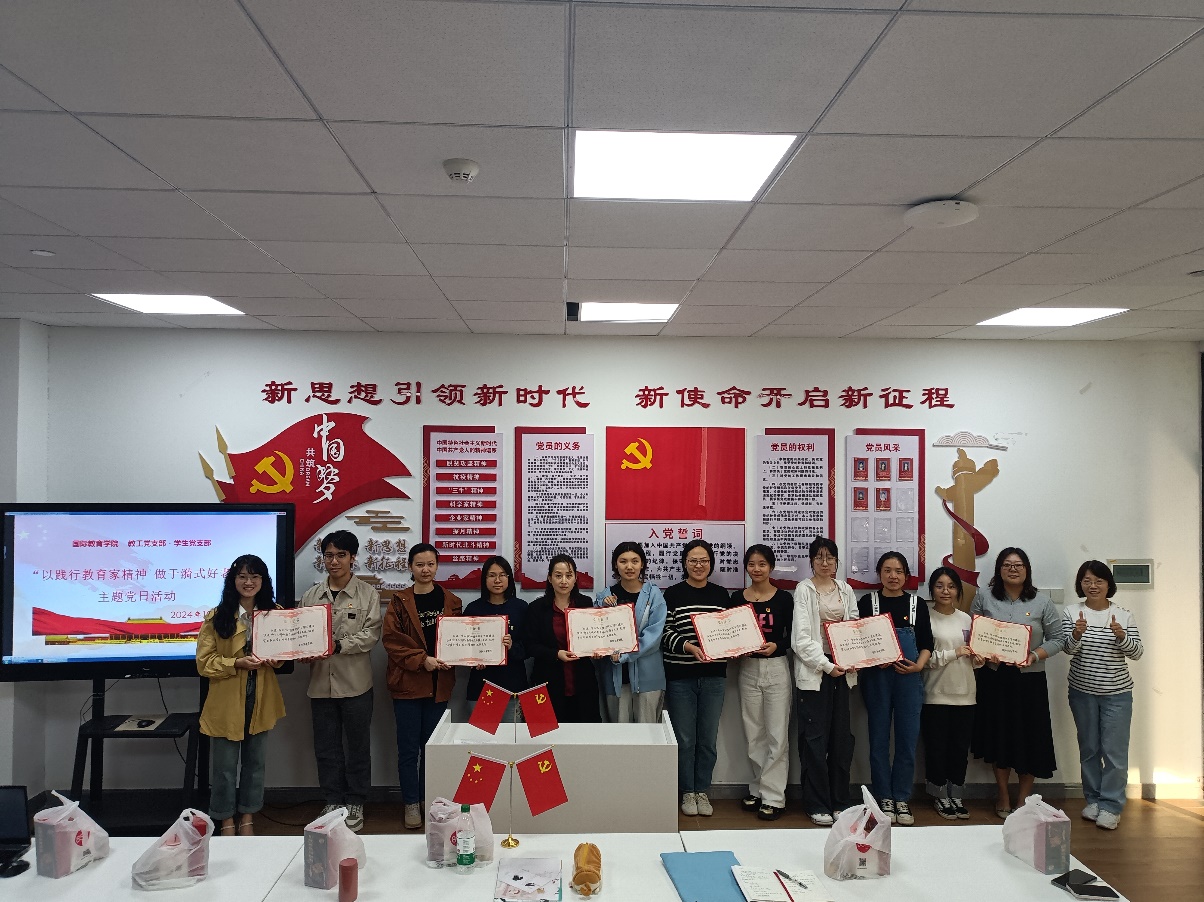 2024年10月10日下午3点,国际教育学院教工党支部联合学生党支部在学校社区“一站式”服务中心共同开展“以践行教育家精神 做于漪式好老师”主题党日活动。活动由教工党支部书记杨晓兴主持,党员教师13人、学生代表6人参加。