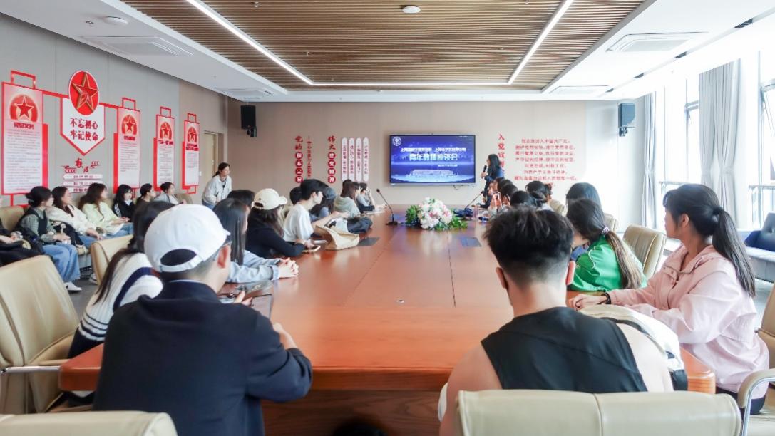 10月10日下午,外国语学院英语系教授谢徐萍带领英语B21-2全体同学参观上海中学东校区。上海中学东校优秀青年教师出席了座谈会。