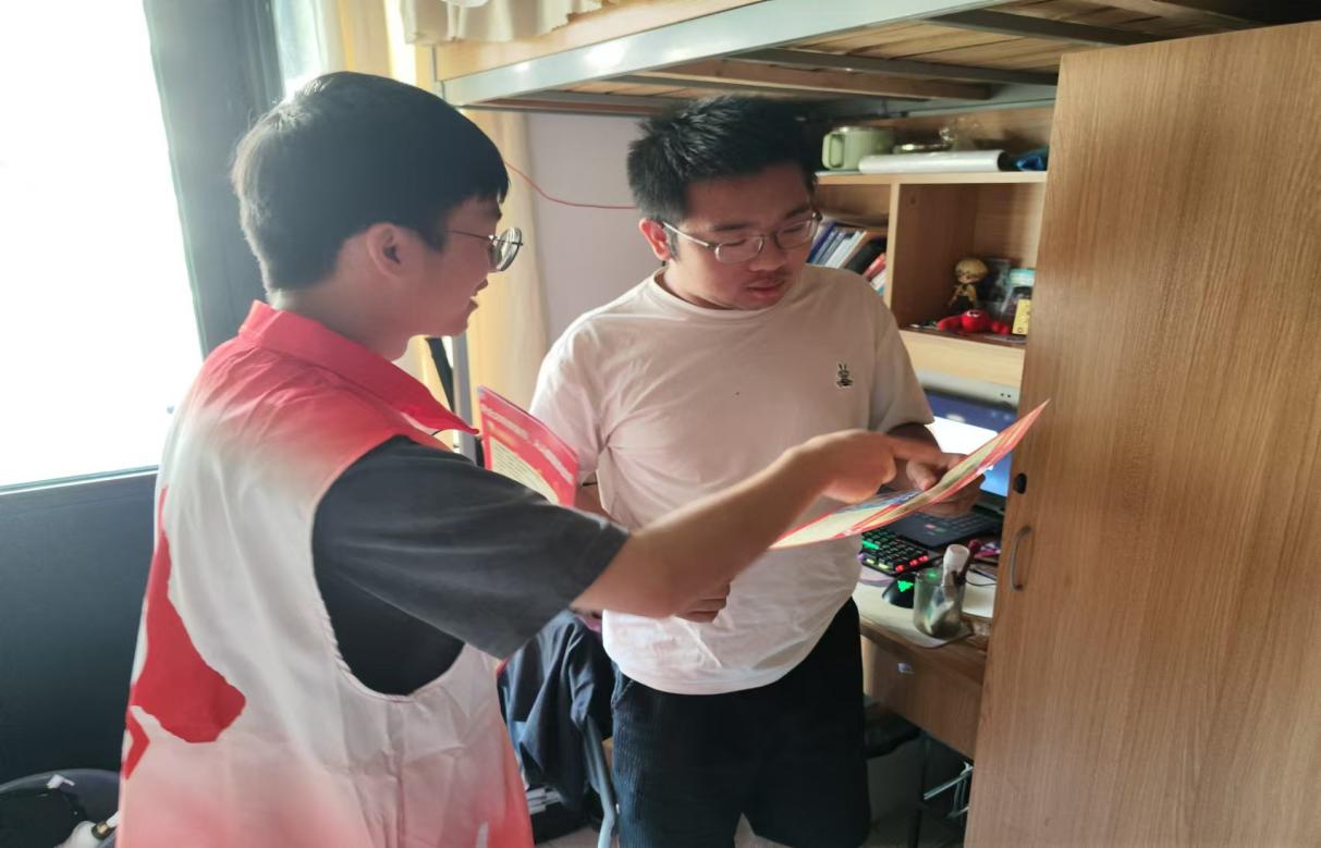 学院领导与党团志愿者深入学生社区,宣讲寝室安全纪律,包括寝室内禁止吸烟、禁止私拉电线、禁止使用违规电器、禁止燃放烟花爆竹和焚烧物品、禁止打架赌博酗酒以及禁止饲养宠物等行为。学院领导在学生社区向同学们强调了寝室安全的重要性,倾听了同学们的声音,解答了同学们关于寝室安全的疑问,进一步增强了同学们的自我保护意识。