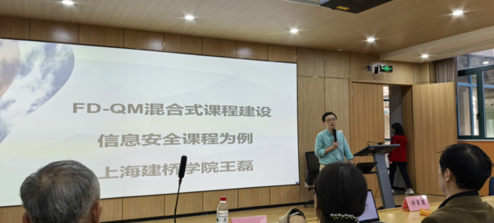 此次培训中,王磊老师的《信息安全》课程被选为了评判课程,通过组内成员的评判,以及对FD-QM标准的学习,王磊老师对课程平台资源进行了全面的改进,以便更好的从学生出发,以学生的角度去学习知识内容。在11月3日的课程线下汇报中,王磊老师被推荐为汇报人,他针对相关学习情况,学生感想等内容进行了深入的汇报和交流。