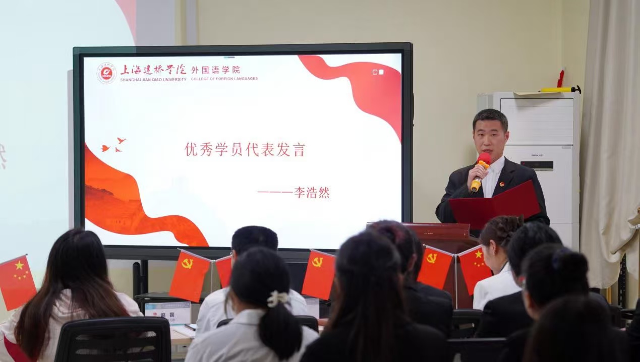 随后,入党积极分子培训班优秀学员代表李浩然分享了自己的深刻感悟和收获。李浩然不仅是入党积极分子也是一名退伍大学生,在党课学习期间,他始终保持着高度的学习热情与专注度。他为在座的学员们分享到通过深入学习党章,了解到了党员的权利和义务,也更加明确了自己作为一名入党积极分子的责任和使命。同时,通过专题课的学习,筑牢了意识形态防线,时刻保持清醒的头脑,感受到了党的伟大历程和光辉业绩,更加坚定了自己为党的伟大事业奋斗终身的理想信念。培训班结束后,他以实际行动践行“全心全意为人民服务”的宗旨,担任了文明修身学导、辅导员助理,积极参加各项志愿服务活动,时刻以党员标准严格要求自己,做到内化于心、外化于行。他激励学员们严于律己,以党章为镜锤炼党性;端正学习态度,掌握学习方法;合理安排专题党课的学习时间,在党课学习的同时牢抓专业课学习。他鼓励学员们积极向党组织靠拢,全心全意投入到党课学习中去,以最实际的行动来迎接此次入党积极分子培训班的考验。