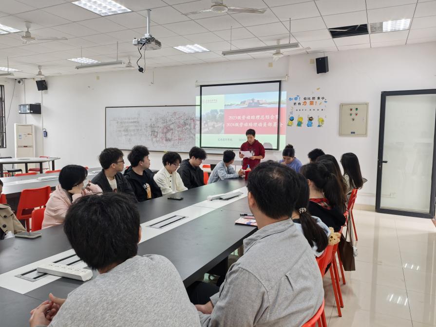 为深入推进学生劳动意识的培养,提高劳动教育水平,营造整洁、优美的校园环境。2024年10月24日在艺术设计学院实训楼219教室召开2023级劳动助理总结会暨2024级劳动助理动员会。出席会议的有劳动教育课负责老师、2023级劳动助理代表以及2024级全体劳动助理。