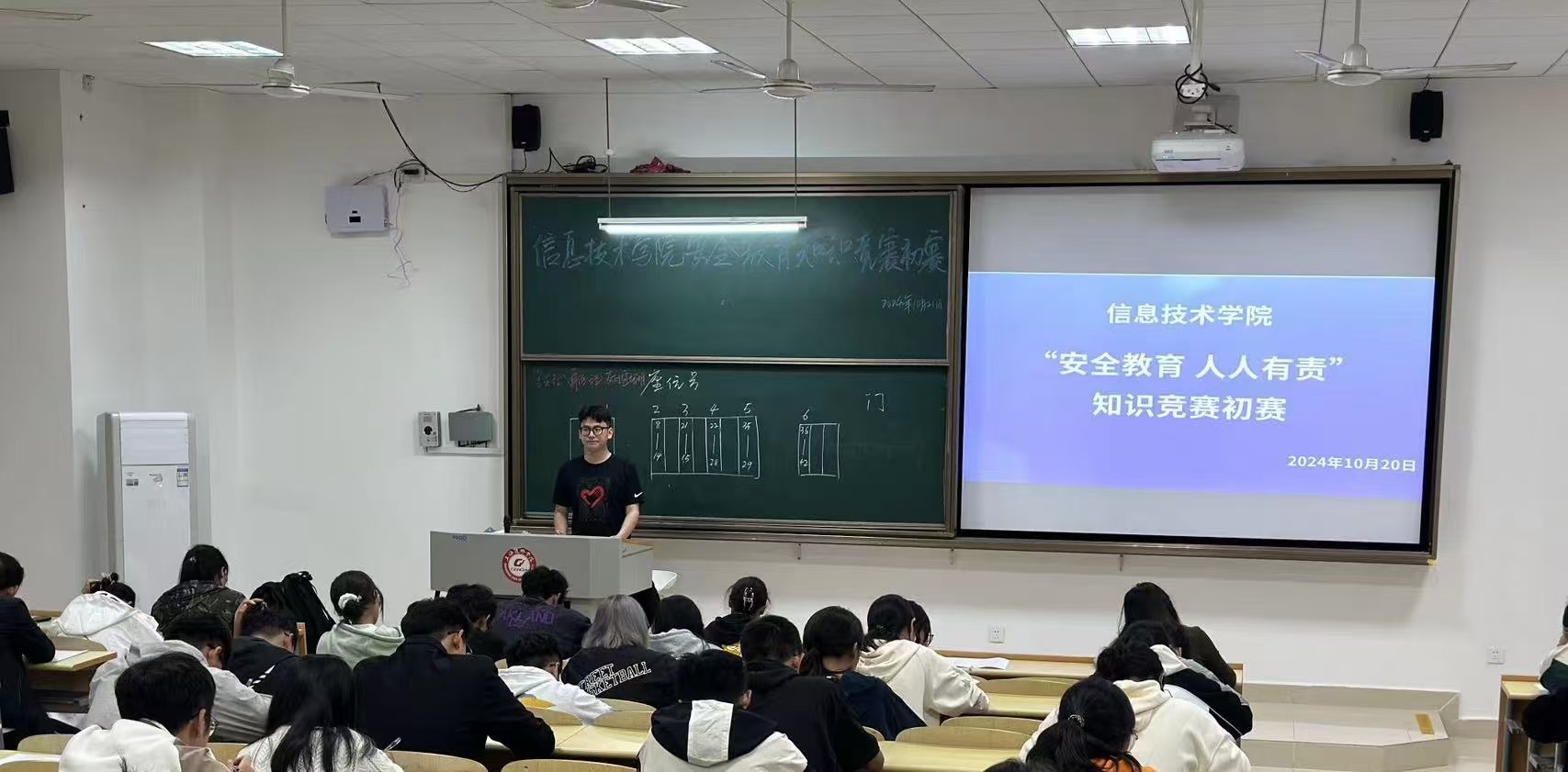 10月7日晚,信息技术学院30个班级利用晚自习时间,开展了“安全教育、人人有责”主题班会,拉开了本次安全教育主题系列活动的序幕,其他班级按照学院统一部署,在辅导员老师的主持下,都相继召开了安全教育主题班会。