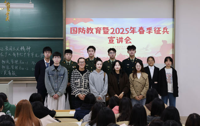 为深入贯彻习近平新时代中国特色社会主义思想,进一步激发商学院广大学生参军报国,履行国防义务的热情,商学院征兵工作站在11月10日组织优秀退役士兵利用晚自习时间进班开展国防教育暨2025年春季征兵宣讲会。本次宣讲活动由商学院退役学生梁正民、杨文骏、李东东,王耀兵以及宣讲团成员罗筑晶、颜宇昊和杨卫佳担任主讲,商学院全体大一新生参加了活动。