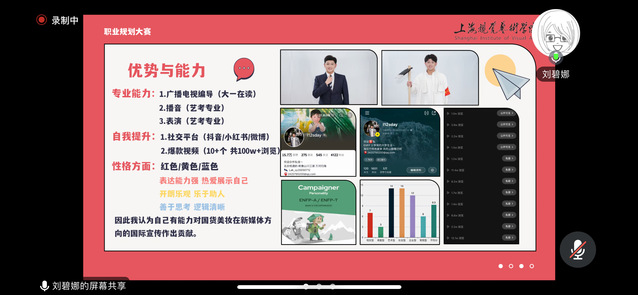 专家对每位参赛选手的主题陈述PPT进行一对一的指导,详细地讲解了大学生进行有效职业规划的方法和技巧。同时,也强调了自我认知的重要性,教导选手们既要把握自身优势,也要关注行业发展趋势,适时调整自己的职业规划和职业目标。此外,专家还分享了一些往届优秀选手的参赛技巧,帮助选手们优化个人参赛能力。