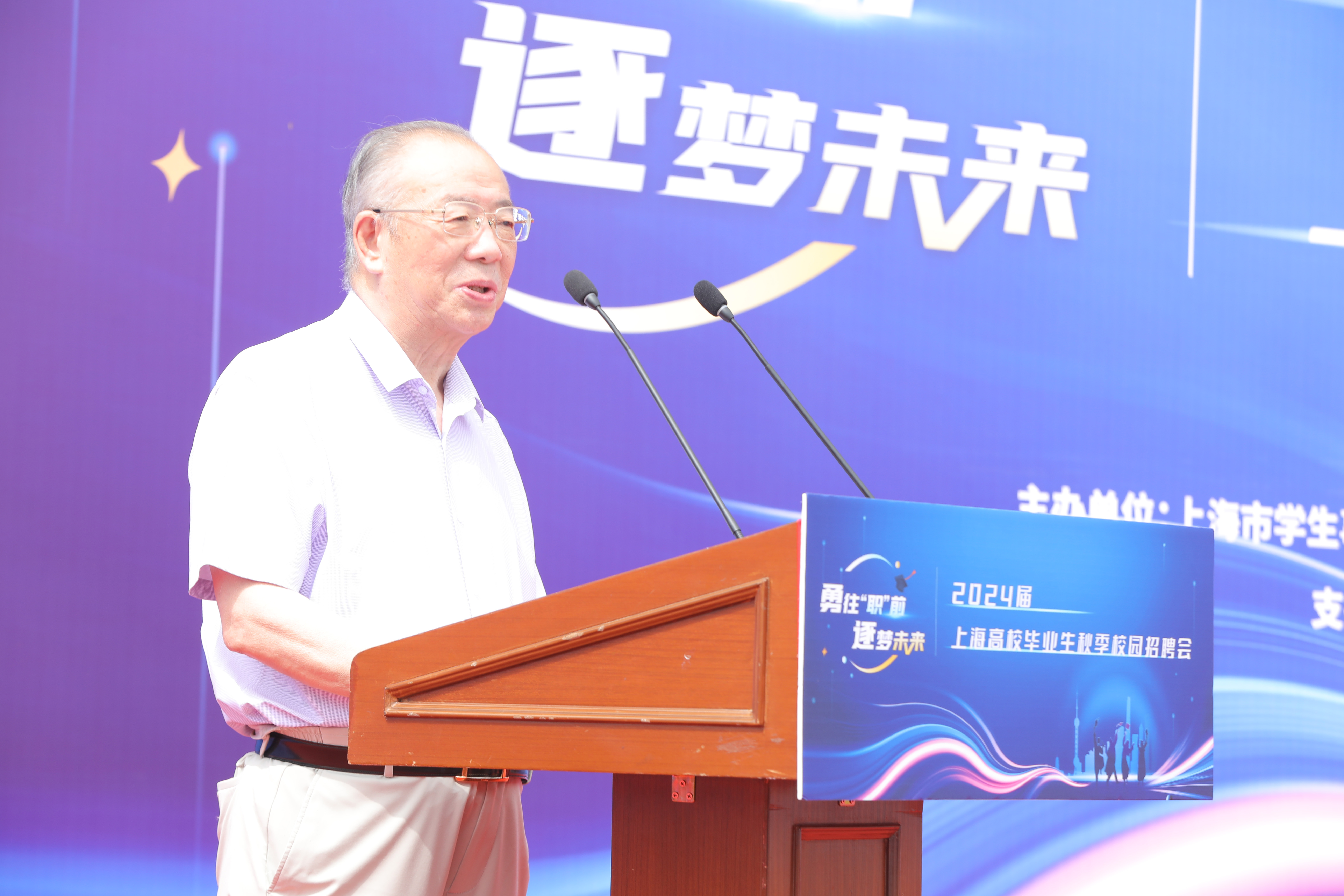 招聘会启动仪式上,上海市教育发展基金会理事长王荣华、上海市教育委员会副主任王浩、上海市就业促进中心主任周国良共同启动“‘逐梦计划’-上海高校辅导员、人社系统指导人员就业能力提升项目”。