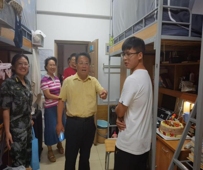 9月15日,台风“贝碧嘉”来临之际,为切实保障留校学生的安全与生活,校党委书记杨伟人和副校长陈伟亲自带队,对留校学生寝室进行走访慰问。此次走访慰问旨在了解留校学生在台风前期的抗台准备和生活需求,确保能够安全度过台风期。杨书记和陈校长带领相关部门负责老师及工作人员仔细检查了学生寝室的防台防汛准备情况,包括窗户是否牢固、排水是否顺畅等,同时提醒学生们要做好台风期间的自我防护。