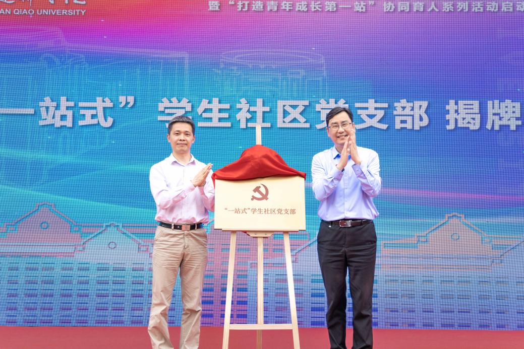 在热烈的气氛中,市民办高校党工委专职干部周光狼、上海建桥学院朱瑞庭校长共同为“一站式”学生社区党支部揭牌,标志着学校在强化党建引领,深化推进“三全育人”综合改革,探索新型学生管理与服务模式上又迈出了坚实的一步。