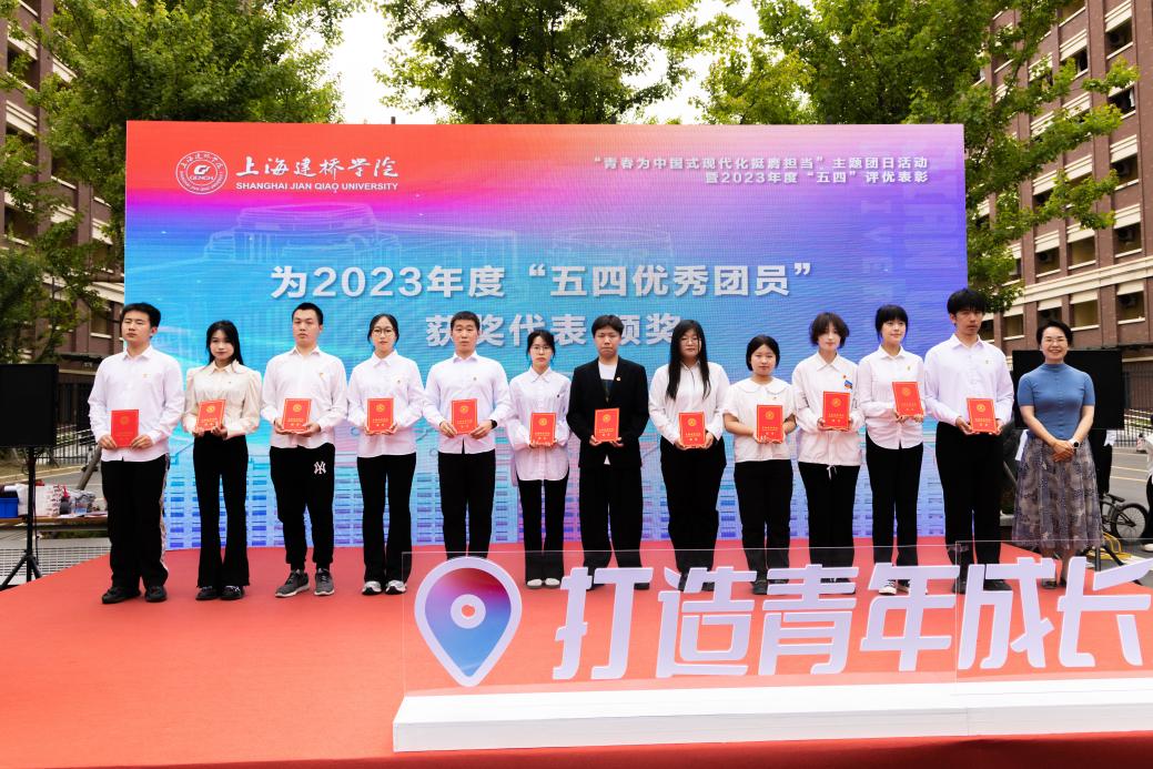 伴随着热烈掌声,“打造青年成长第一站”协同育人系列活动正式启动。一段精心制作的介绍视频,生动展现了系列活动的亮点与愿景。音诗画节目《时空的对白》巧妙地将历史与现代相连,通过深情的朗诵、悠扬的音乐与生动的画面,带领现场师生穿越时空隧道,与历史上的先驱者进行了一场心灵的对话。紧接着,一场重温入团仪式的环节将活动推向高潮。快闪合唱《有我》以其激昂的旋律和励志的歌词,表达了当代青年“强国有我,请党放心”的坚定信念和勇于担当的时代风貌。活动现场还举行了“青春为中国式现代化挺膺担当”主题团日暨2023年度五四评优表彰活动,对学校2023年度“五四特色分团委” “五四优秀分团书记”“五四特色团支部”“五四特色团支部” “五四优秀团员”进行了表彰。