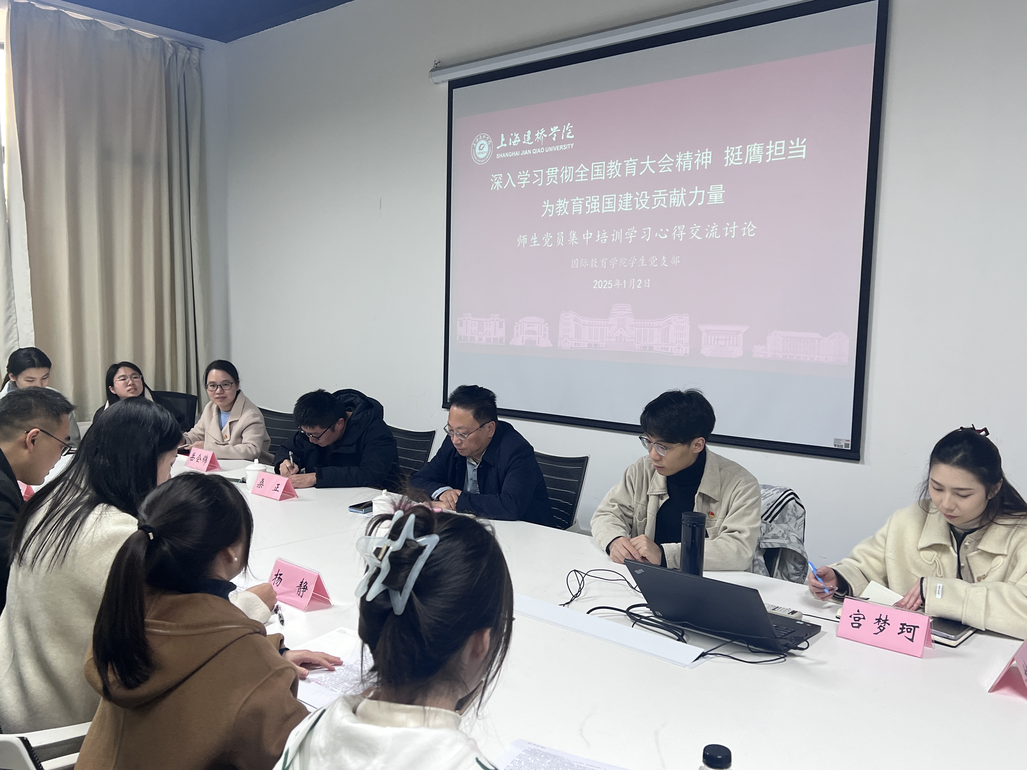 为深入学习贯彻全国教育大会精神,推动教育强国建设,国际教育学院学生党支部在听取教育部怀进鹏部长做的《深入学习贯彻全国教育大会精神,挺膺担当,为教育强国建设贡献力量》专题报告后,于2025年1月2日下午在学院209会议室召开交流研讨会,会议由支部书记杨静主持,支部师生党员参会。校党委书记杨伟人、校宣传部部长桑正莅临指导。
