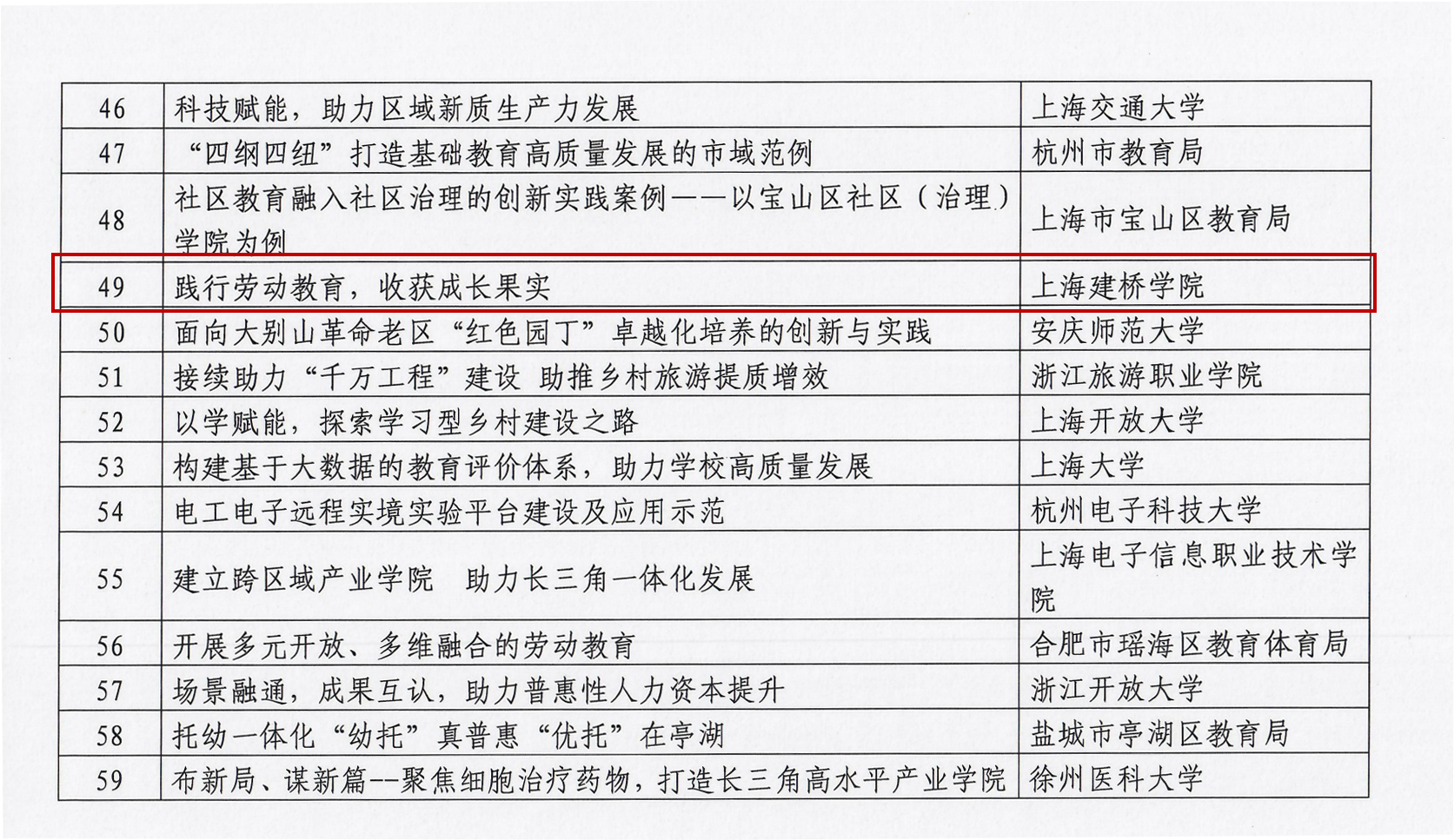 2月26日,教育部公布“长三角教育现代化”典型案例,上海建桥学院《践行劳动教育,收获成长果实》案例从全国遴选的案例中脱颖而出,成为百个典型案例之一。这是学校在国家级教学典型案例上取得的又一突破。
