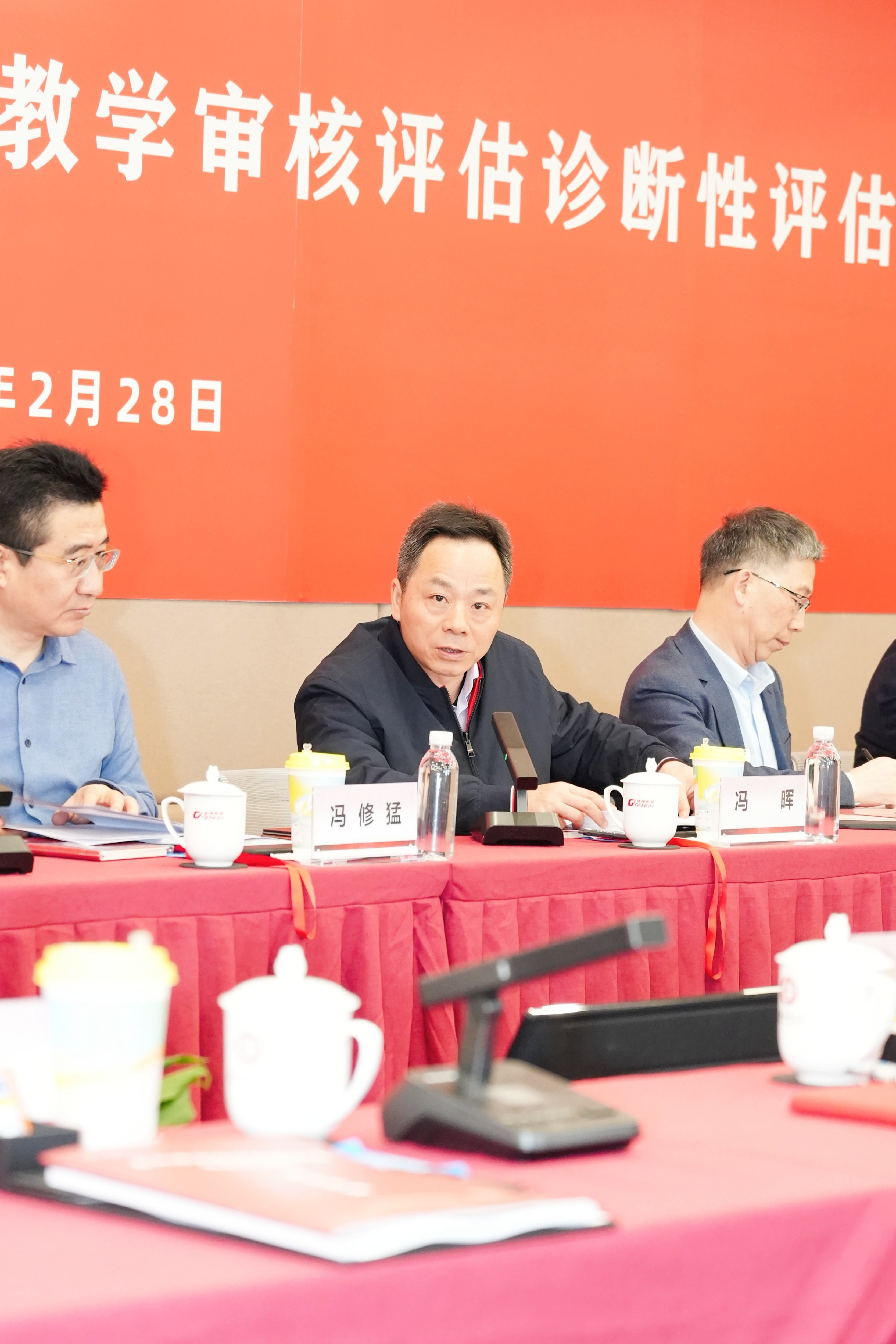最后,冯修猛作总结讲话。他对学校本科教育教学成果、专业建设和人才培养等方面所取得的成效给予充分肯定,认为取得了以评促建、以评促改,以评促管,以评促强的阶段性成效。同时,他对学校诊断性评估各个环节提出了关键意见和建议,强调全校应形成共识,查找差距,及时整改,提升优化,在正式审核评估中取得优异成绩。