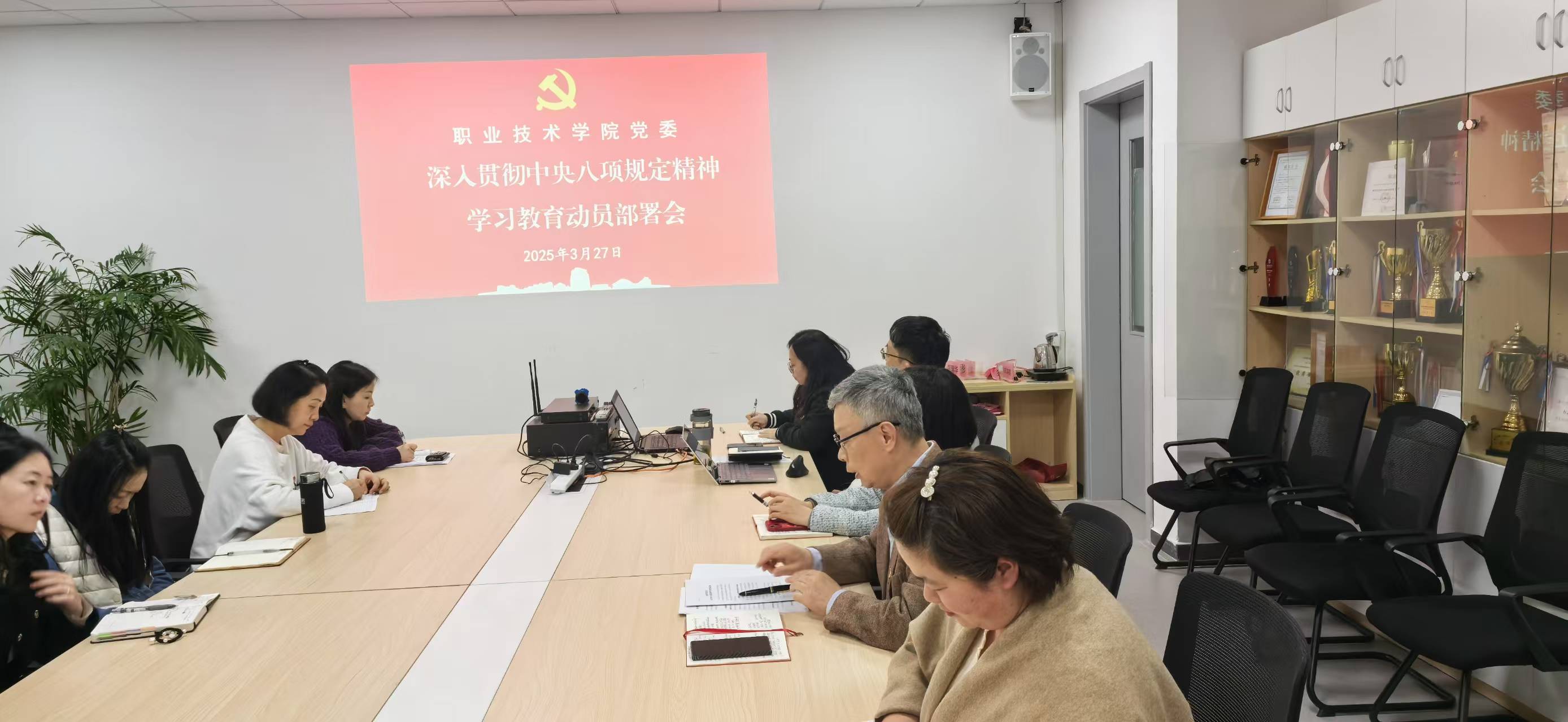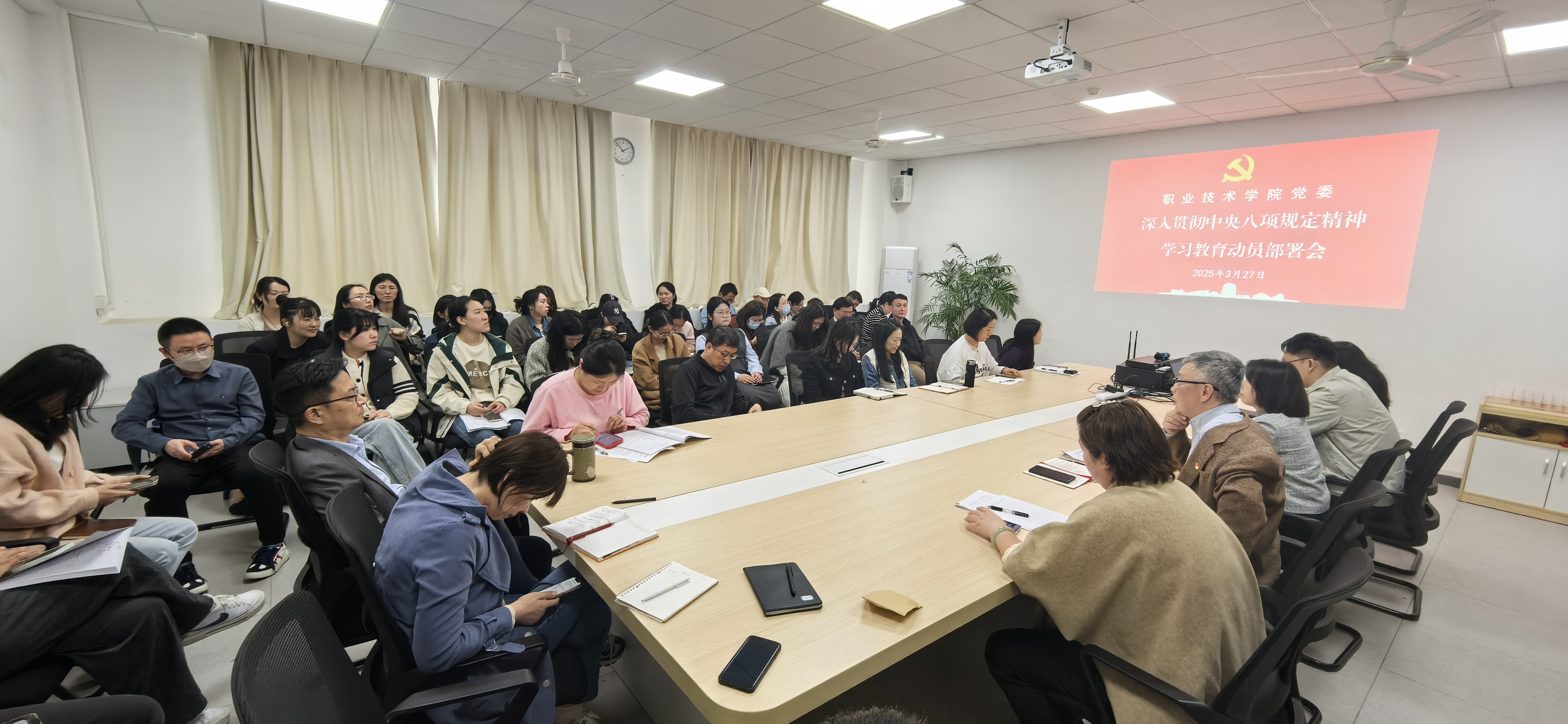 3 月 27 日,上海建桥学院职业技术学院在学院会议室召开深入贯彻中央八项规定精神学习教育动员部署会。学院党委书记王加宁主持会议并作动员讲话,学院领导班子、全体党员以及全体教职工参加会议。