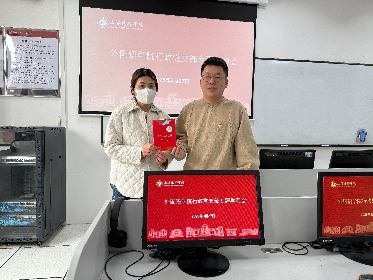 3月27日,外国语学院行政党支部集中学习了《上海建桥学院党委深入贯彻中央八项规定精神学习教育实施方案》、《中共上海建桥学院委员会关于落实全面从严治党主体责任的实施方案》以及《中共上海建桥学院委员会2025年工作要点》。行政党支部全体党员参加会议,会议由支部书记陆璐主持。