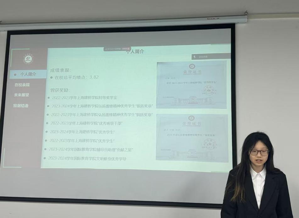 答辩会伊始,主持人刘志霞老师简要介绍了2025年度上海市普通高等学校优秀毕业生和上海建桥学院优秀毕业生的评选程序以及答辩的流程与前期准备工作。