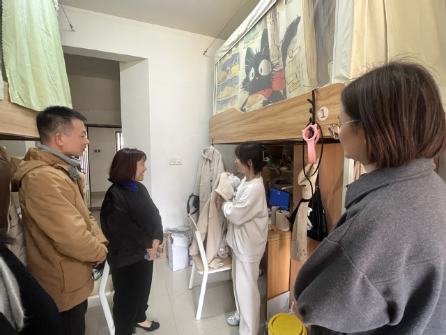 走访过程中,学院领导与同学们展开亲切且深入的交流。书记刘爱香详细询问了同学们开学以来的学习适应情况,了解同学们的生活需求。看到部分同学桌上摆放的专业书籍和学习资料,刘书记还与他们就专业学习、学科竞赛等话题展开讨论,鼓励大家勇于探索,不断提升自我。在了解到有贵州籍学生留校过节时,刘书记关切地询问学生的假期安排,耐心倾听他们在生活中遇到的困难,并表示学院会全力提供帮助,这些贴心的关怀让同学们深受感动。