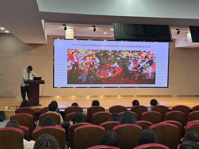 陈洁院长在开场致辞中表示:“美育是扎根文化土壤的启蒙教育,希望今天的对话能成为同学们探索传统美学的钥匙。”随着黑白画面中浮现万氏兄弟调试改装摄影机的历史镜头,时光仿佛倒流至1926年《大闹画室》的创作现场。朱老师展示《铁扇公主》剧照讲述:“这部1941年的动画长片在日本上映时,影院座无虚席,手塚治虫正是受此启发投身动画创作。”当荧幕亮起《小蝌蚪找妈妈》的4K修复片段,齐白石笔下的水墨蝌蚪在数字技术中苏醒,游弋轨迹与宣纸晕染效果完美重现。“为了让水墨动态延续自然,画师需在0.01毫米赛璐珞片上反复试验,有时甚至要跪在拷贝台前勾线八小时。”朱老师展示的1961年《大闹天宫》原画师工作日记中,密密麻麻的批注记录着十万张手绘稿背后的匠心。