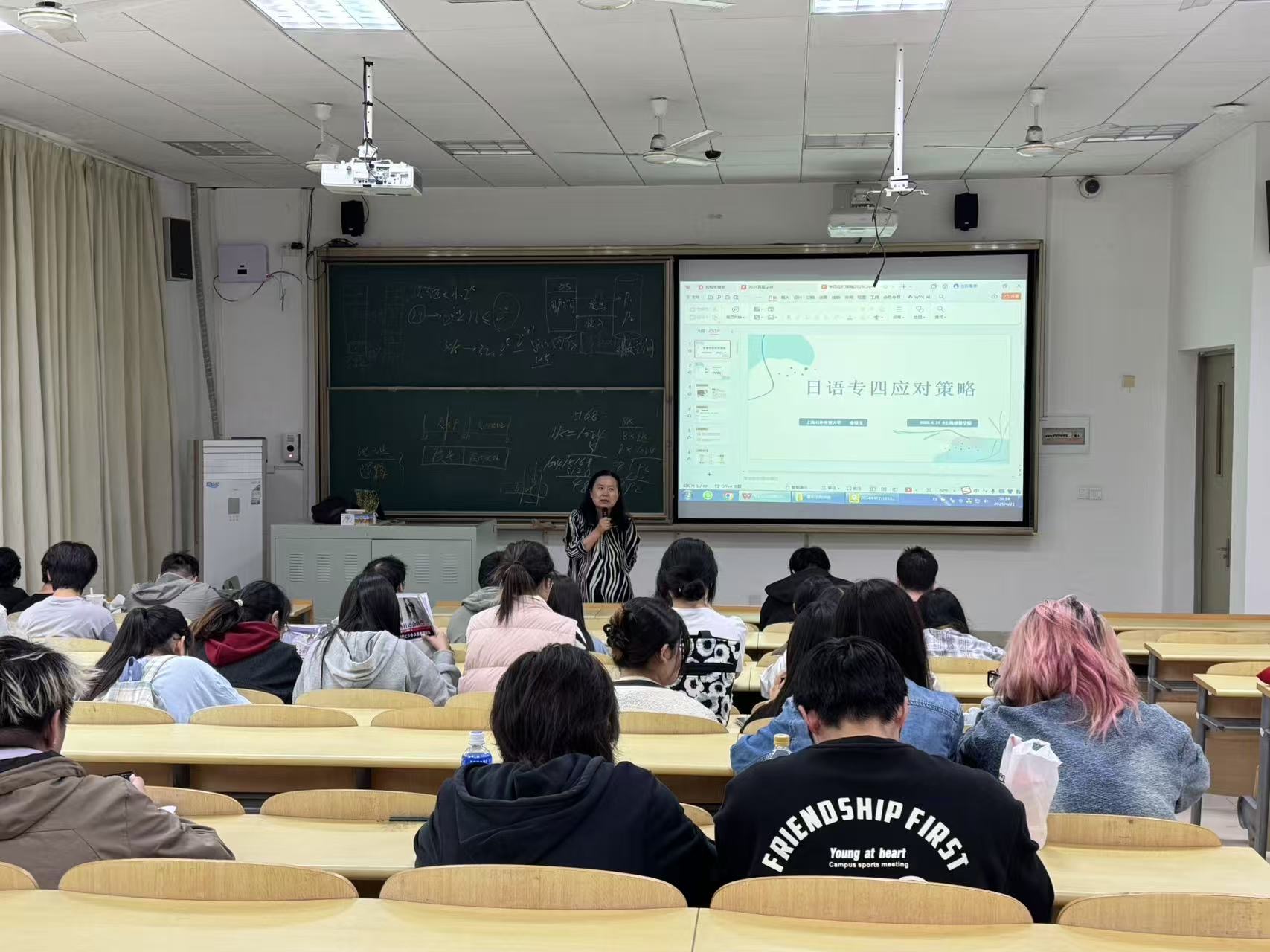 4月21日,国际教育学院特邀上海对外经贸大学金镜玉教授,举办“日语专四应对策略”专题讲座。讲座以2024年真题为样本,聚焦评分细则、答题技巧与能力提升路径,为学子提供实战指南。国际教育学院23级日语专业共40余名学生参加此次讲座。