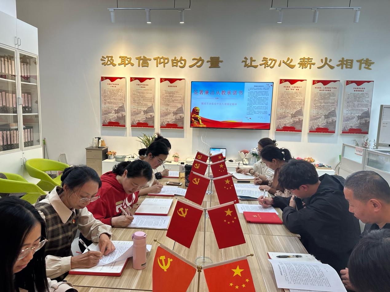 为将学习成果转化为实际行动,第一党支部组织全体党员教师签订了《廉洁从教承诺书》。与会党员郑重承诺,将在教学、科研等工作中严格遵守中央八项规定精神,廉洁自律,以身作则,为学生树立良好榜样,助力学院和学校高质量发展。