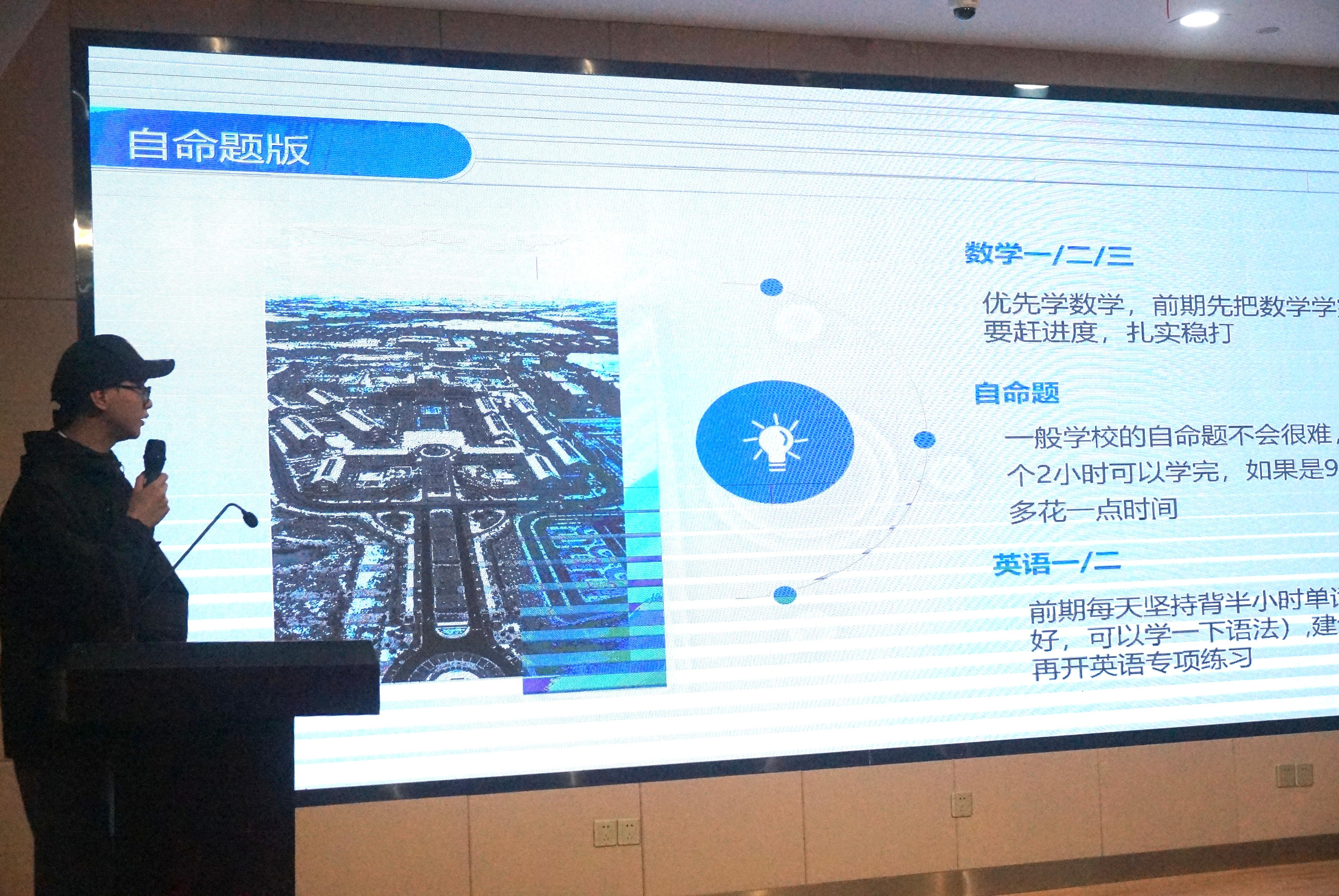 在分享会上,成功考取复旦大学物流工程与管理专业的施建学长以及北京工商大学网络与信息安全专业的张前富学长分别分享了他们的考研经历和心得。施建学长从院校选择、资料获取、复试准备和心态调整四个方面进行了详细分享。他强调了明确目标和评估自身实力的重要性,并建议学弟学妹们充分利用研招网等资源,提前做好充分的准备。张前富学长则侧重于备考规划、学习方法、资料选择和时间管理。他建议学弟学妹们优先学习数学,扎实基础,并分享了如何高效利用学习时间和资源,确保备考的科学性和有效性。