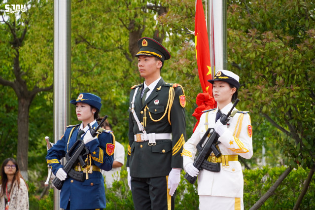 上午9时,各二级学院、职能处室及裁判员组成的师生方阵仪仗队依次入场。庄严的升旗仪式后,副校长赵雷洪宣布运动会正式开幕。