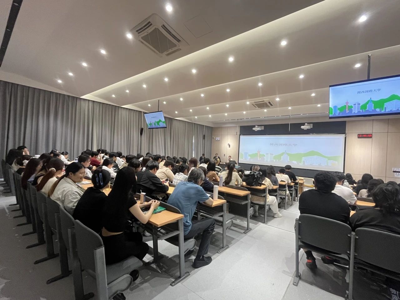访问期间,日本关西国际大学面向我校日语专业学生举办了专场宣讲会。浜名笃校长亲自介绍该校的办学特色、专业设置及留学政策,并与学生互动交流,解答关于升学、就业等方面的问题。宣讲会现场气氛热烈,学生们纷纷表示受益匪浅,对未来的留学规划有了更清晰的认识。