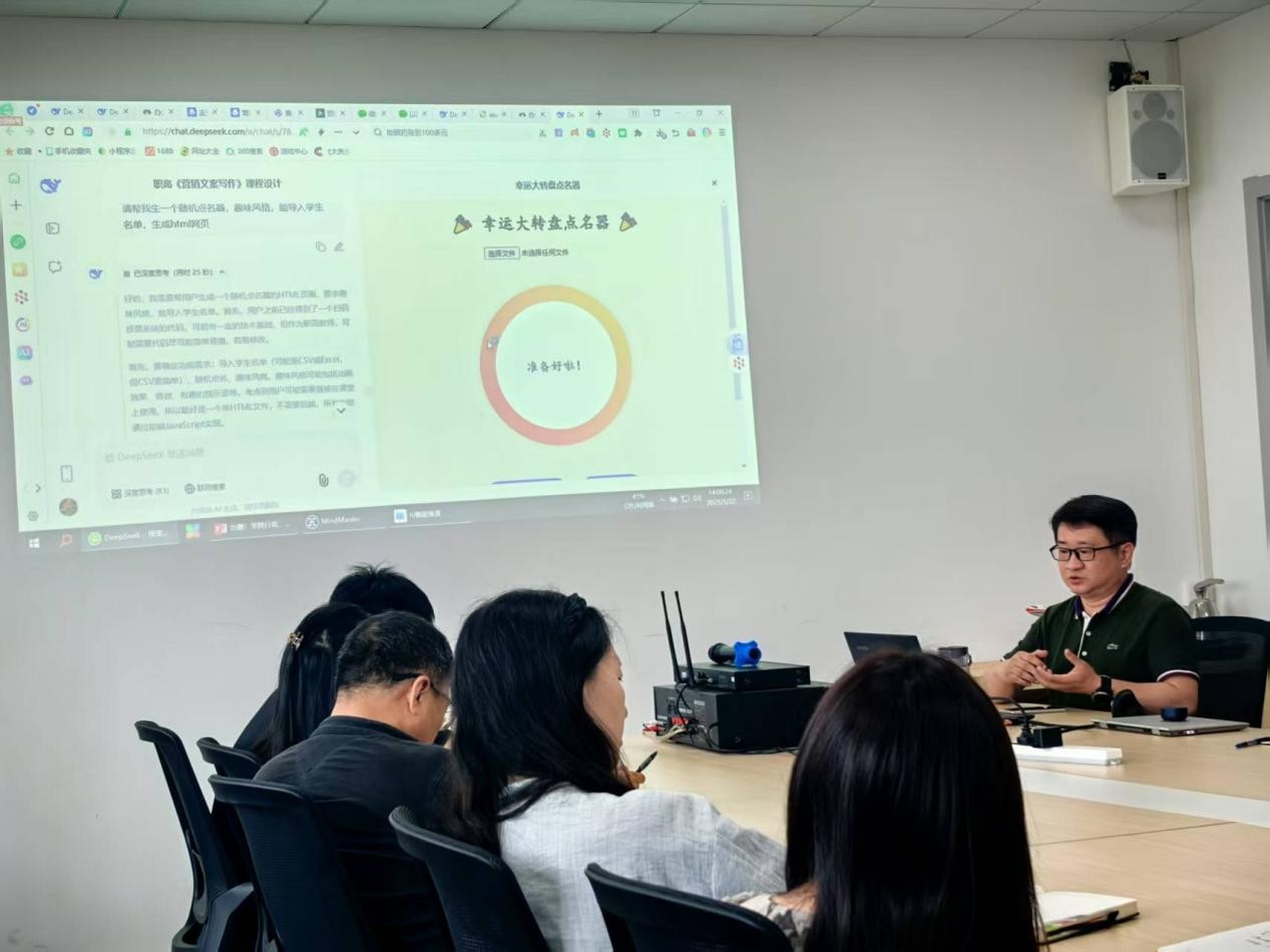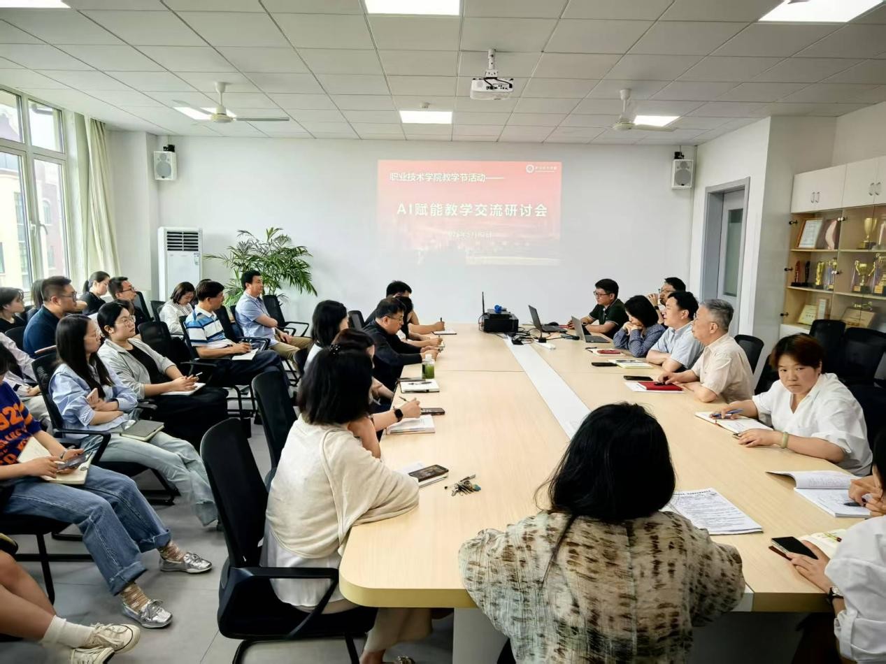 5月22日职业技术学院会议室举办第八届教学节系列活动-AI赋能教学交流研讨会,活动邀请潘洪涛老师分享AI技术在教学中的应用,本次活动全院教师积极参与,共同探讨AI如何助力个性化教学、优化课堂效率,并为未来教育注入新动能。