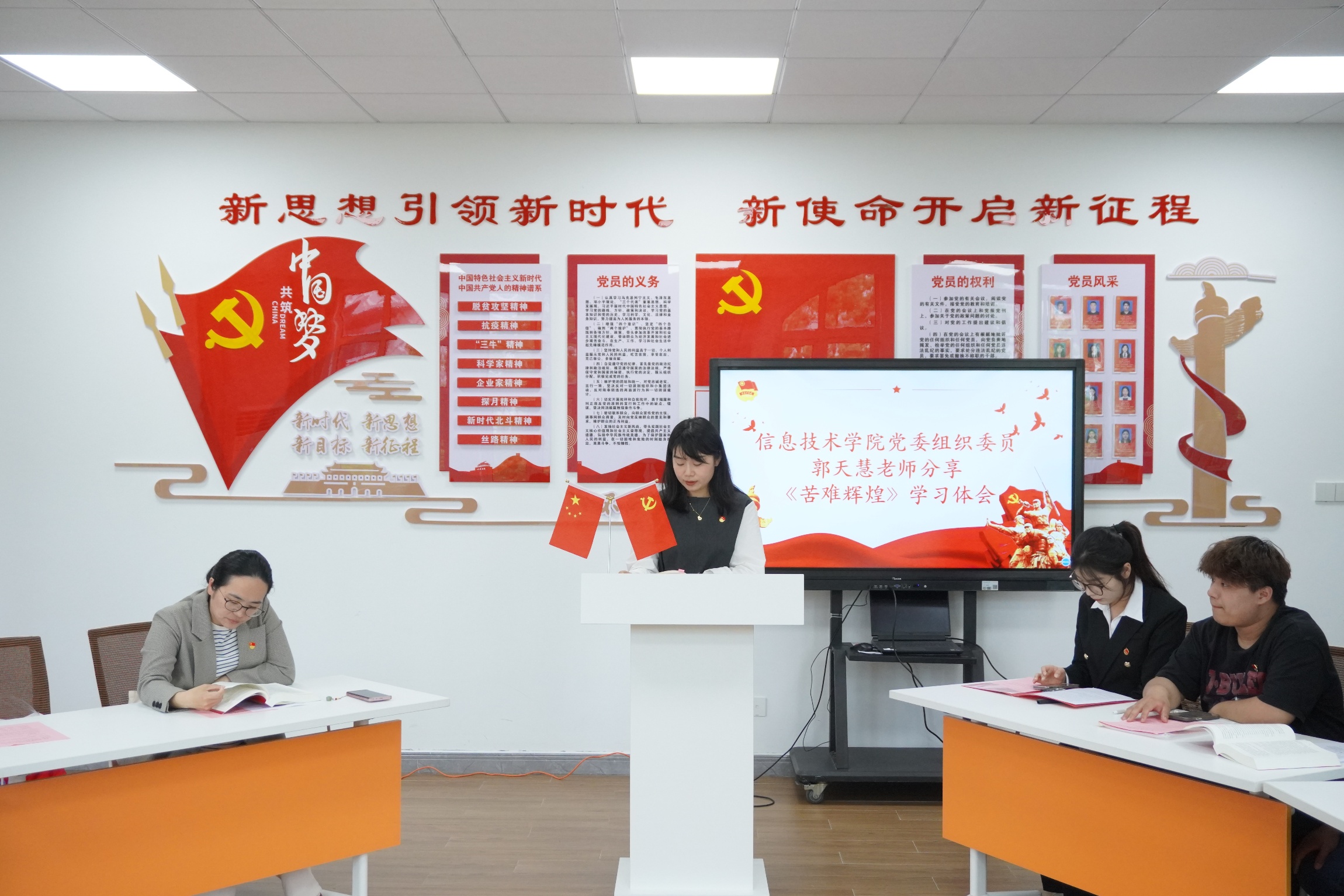 为帮助当代青年锚定精神坐标,感悟廉洁文化,汲取奋进力量,信息技术学院在学生社区共享区红色讲堂举办溯光·《苦难辉煌》五月读书会,党委副书记徐娜、组织员郭天慧与党建中心学生代表共同围绕《苦难辉煌》一书进行学习交流。