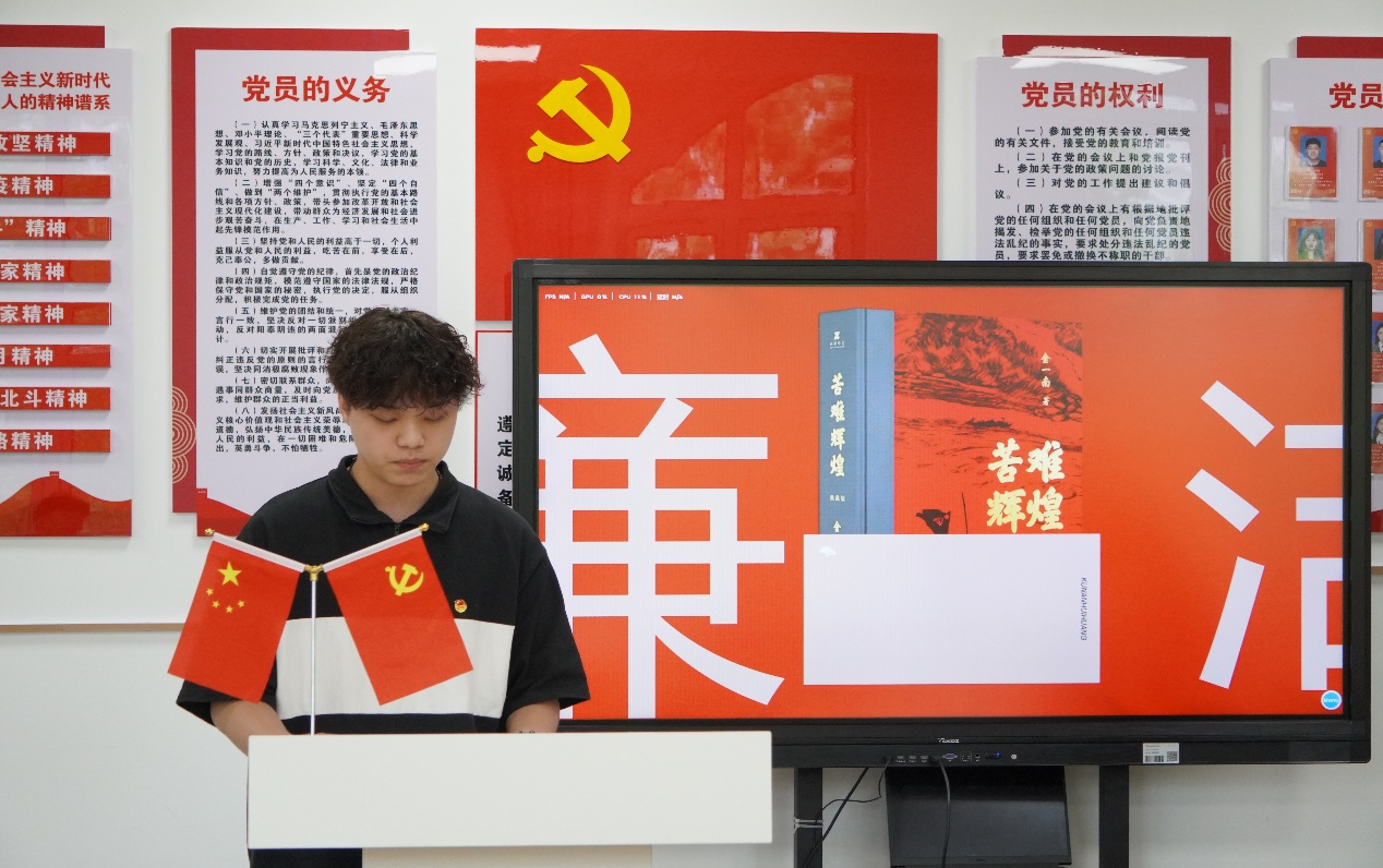 副书记徐娜首先分享《苦难辉煌》一书的读书感悟,带领大家共同回顾党的峥嵘岁月,感悟革命先辈的坚定信念与伟大精神。她将历史与青春共鸣,细致解读了在苦难中汲取的信仰力量、韧性力量、集体力量和廉洁奋进的力量。强调在全面从严治党的时代背景下,廉洁文化教育已成为青年成长的必修课,当代青年应响应中国共产党的号召,争做新时代的“廉洁火种”,让清廉成为青春的底色。