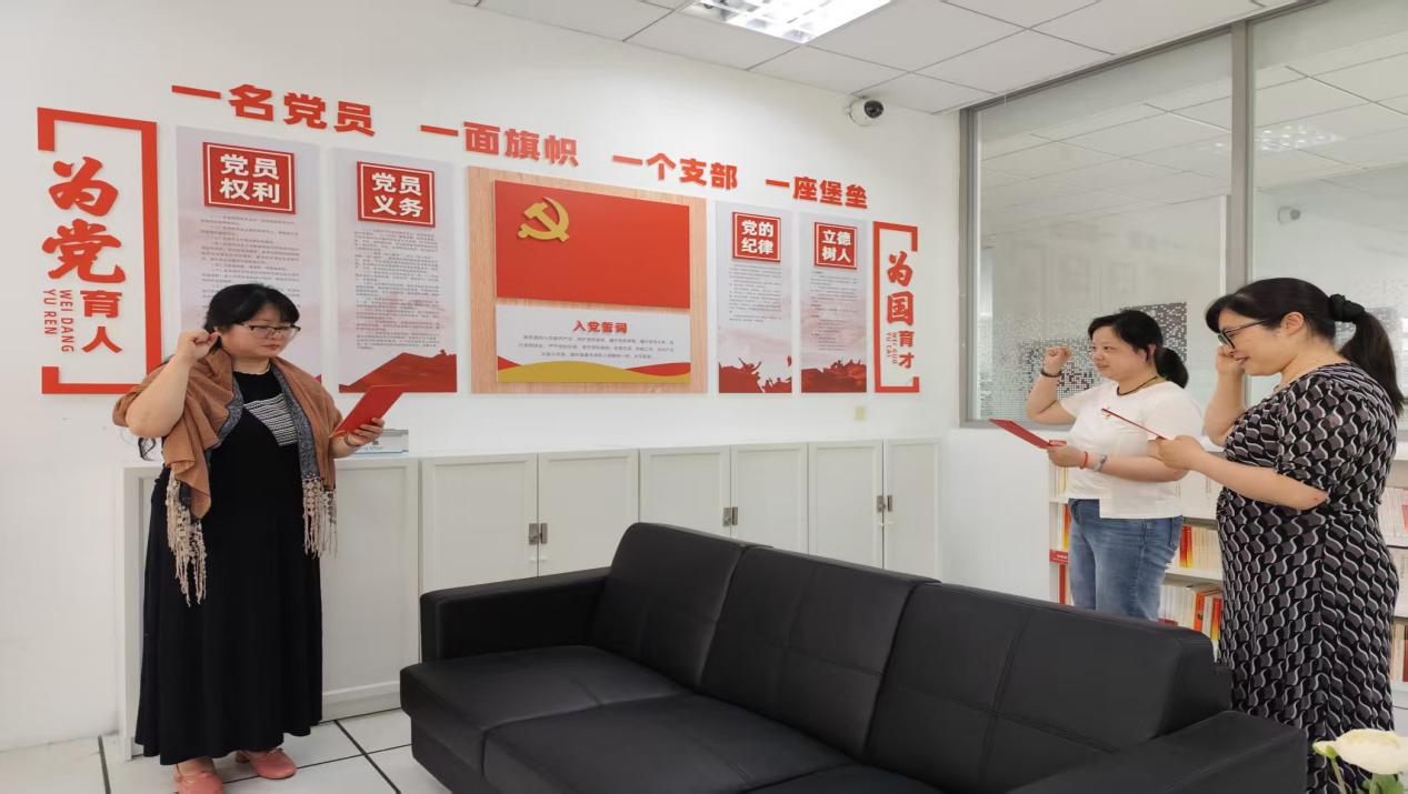 本次会议的最后环节是为支部党员刘晓霓和胡雪梅老师过政治生日。在庄严的党旗下,由支部宣传委员顾君老师领读,两位老师重温了入党誓词。在场的每位党员都鼓掌祝贺,表示会在自己平凡的工作岗位上踏实工作,努力践行共产党员的初心使命。