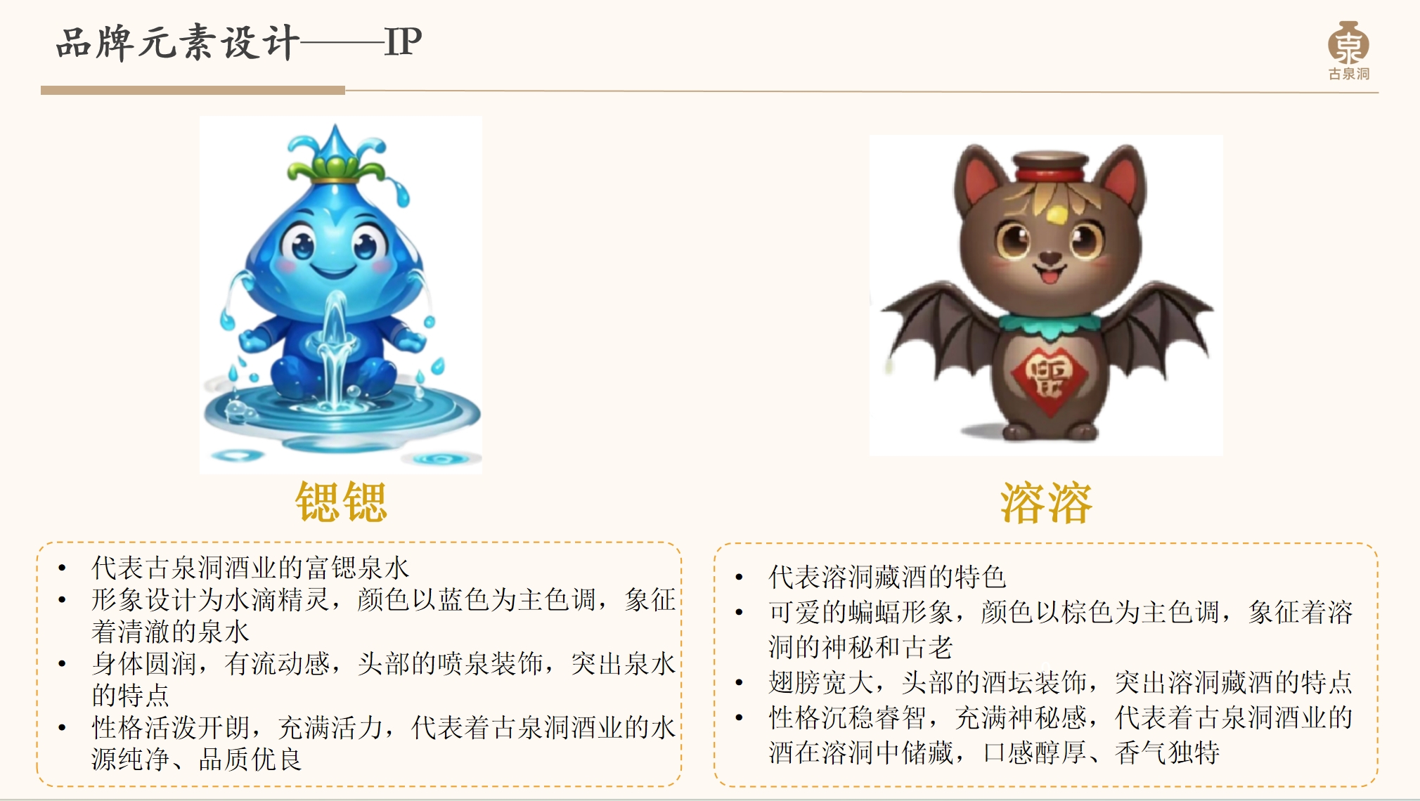 团队选择泸州古泉洞酒业股份有限公司为策划对象,方案以“古泉酝佳酿,洞藏岁月香”为核心理念,致力于打造“中国生态洞藏白酒新标杆”。当前白酒行业面临“同质化内卷”与“消费触点失灵”的双重难题,但项目深度挖掘企业所在地的独特资源——北纬27°黄金酿酒带的富锶矿泉和492米海拔溶洞的天然储藏优势,创新性地构建了“生态稀缺性+文化稀缺性(古彝文明)+工艺稀缺性”的三维价值体系,以不可复制的差异化打破头部品牌垄断格局。在精准定位25-45岁注重养生与情感消费的青年群体基础上,团队提出了“古彝文明活态体验+科技赋能”的创新运营模式。该模式融合了三星堆文创联名、沉浸式酒庄体验、区块链溯源系统保障品质可信等亮点,并设计了专属IP形象“锶锶”“溶溶”及完整的视觉系统,精准匹配新一代消费者对“文化内涵+品质保障”的双重诉求。营销策略上,团队采用线上线下融合推广,结合趣味小游戏引流、全媒体矩阵传播,并创新性地融入了“古彝乡土振兴计划”, 将品牌传播与乡村产业扶持结合,既规避传统硬广的消费疲劳,又通过公益属性提升品牌温度,在消费疲软背景下以“价值共鸣”替代“单向灌输”,赢得评委对“商业可持续性”的认可。