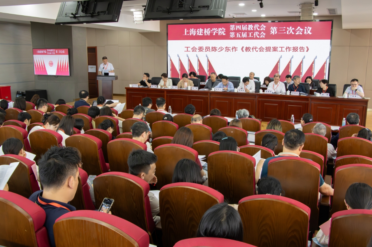 6月4日下午,上海建桥学院第四届教职工代表大会暨第五届工会会员代表大会第三次会议开幕,大会以“凝心聚力新时代,踔厉奋发新征程”为主题,教代会主席团成员、教代会正式代表、列席代表、特邀嘉宾等出席会议。校工会副主席潘秀玲主持。