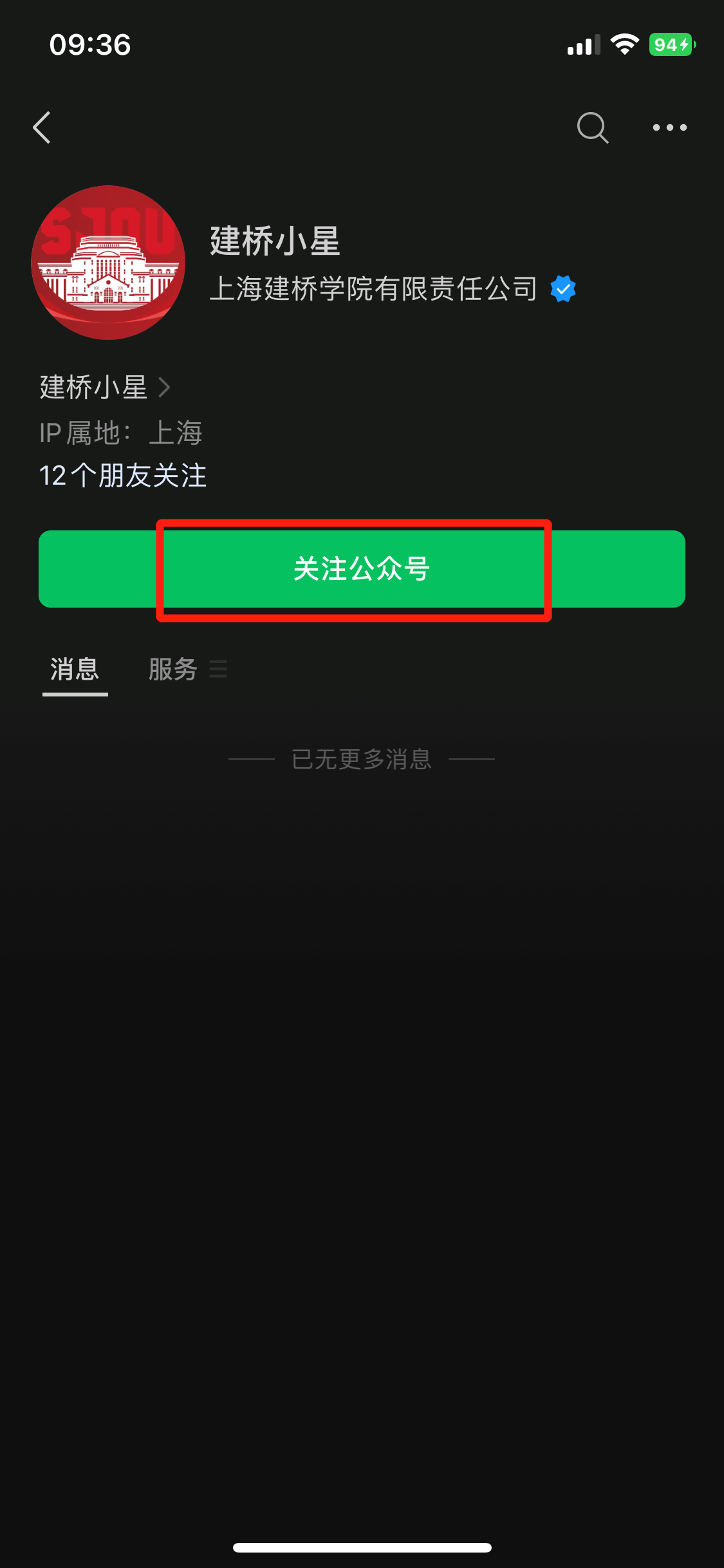 (1)在微信中搜索“建桥小星”公众号,并且点击“关注公众号”。(或扫描下方二维码)