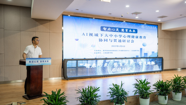 为深入贯彻全国教育大会关于“加快教育现代化,建设教育强国”的精神,6月6日上午,由教育部高校思想政治工作创新发展中心主办、上海建桥学院承办的“智启心灵,慧育未来:AI视域下大中小学段心理健康教育协同与贯通”研讨会我校举行。来自上海29所大、中、小学200名管理者心理健康工作者会。上海市教委德育处二级调研员江伟鸣出席研讨会并讲话,我校党委书记杨伟人、副校长陈伟出席研讨会,学工部部长张巍主持研讨会。