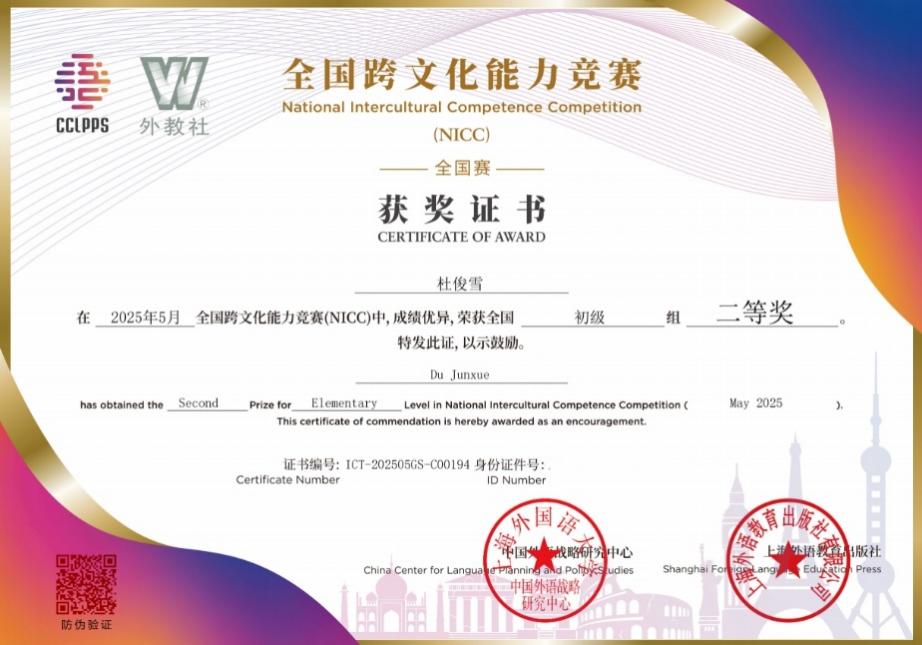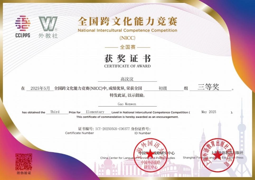 2025年上半年全国跨文化能力考试暨全国跨文化能力竞赛(ICT&NICC)于5月17日上午顺利举行。来自全国各地300余所高校、高中及一些企事业单位的考生参赛,成绩及奖项于近日揭晓。我院英语系大二学生张琰、杜俊雪、高汶汶在激烈的竞争中脱颖而出,分别荣获上海市一、二、三等奖,同时也是全国赛一、二、三等奖,为近年参赛最好成绩。