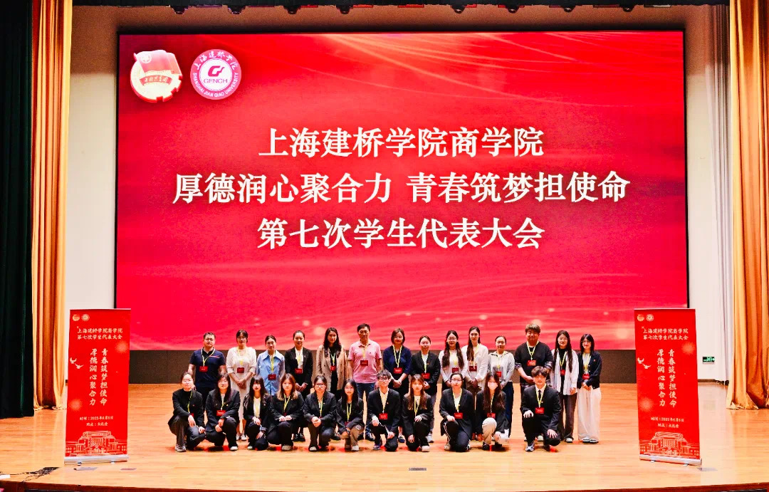 6月5日,上海建桥学院商学院“厚德润心聚合力,青春筑梦担使命 ”第七次学生代表大会在大礼堂隆重举行。上海建桥学院学生会秘书长李月艳老师、商学院院长高健教授、商学院党委副书记俞海燕老师及各学院学生会秘书长、学院代表出席本次活动。