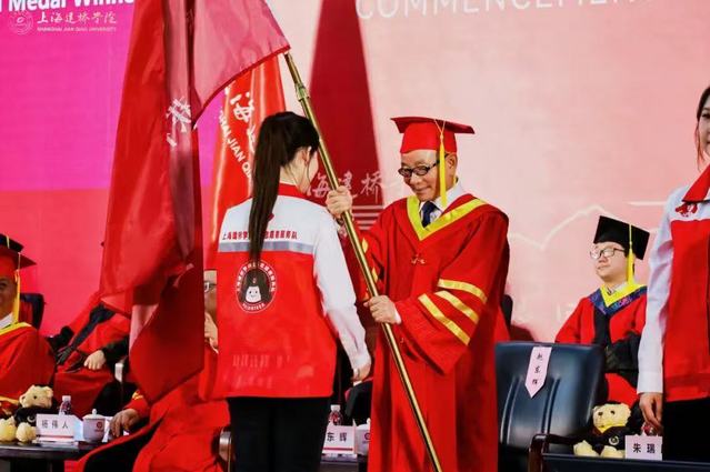 校党委书记杨伟人宣读了优秀毕业生表彰决定。今年,我校共有336名学生获评“上海市优秀毕业生”,366名学生获评“上海建桥学院优秀毕业生”。优秀毕业生代表依次上台,接受证书及“拨穗礼”。