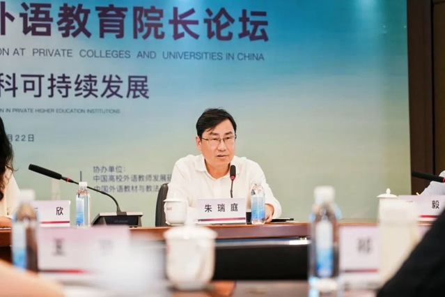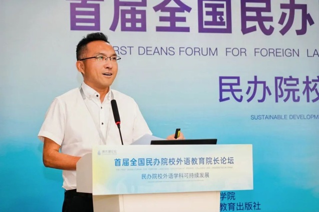 上海外国语大学王欣副校长在致辞中指出,当前民办院校外语学科建设面临诸多时代背景下的新挑战,社会对于外语人才的需求日益复合多元,民办院校外语教育在师资储备、专业化程度等方面亟待提升。探索外语教育发展的特色化道路、建设高素质专业化教师队伍,是提高民办院校教育水平的有力举措。他希望论坛成为共享资源、共解难题的平台,秉承“滴水汇海”精神共谋发展,秉承滴水湖“滴水汇海”的精神,共谋发展。