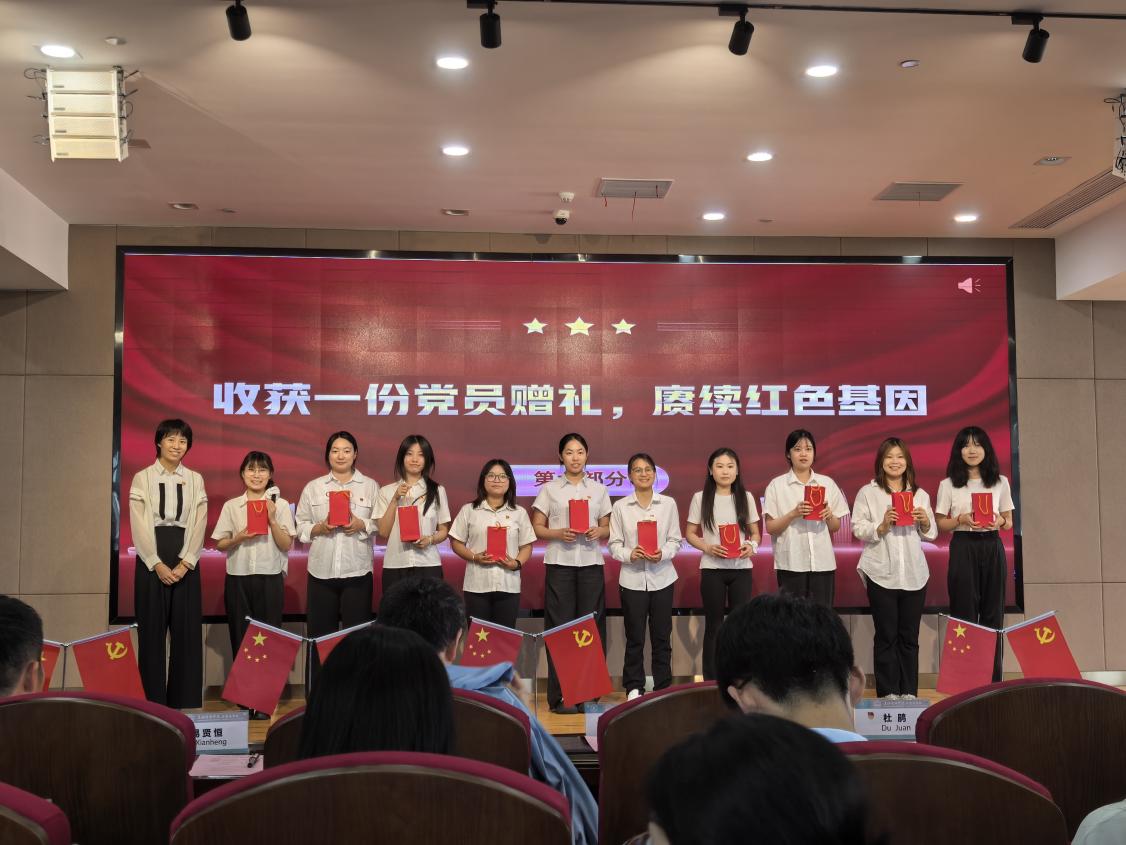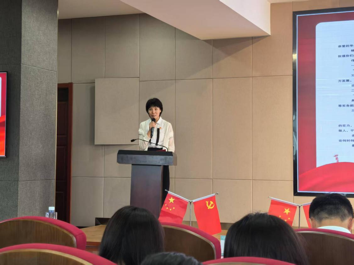 党委副书记伊莉代表学院为毕业生党员赠送了,学院为他们精心设计了一份“毕业生党员礼盒”,内含党徽、党章、廉洁标尺和致毕业生党员的一封信。党徽,是“第一身份”的烙印;党章,是党员的行动指南;廉洁标尺上“心中有尺,行事有度”的箴言,是对党员们廉洁自律的警醒;而学院给毕业生党员的信,则承载着学院对党员同志们的深切嘱托与期许。这份赠礼,不仅饱含了学院的深情厚谊与美好祝福,更是一套寓意深刻的“精神行囊”。党徽是身份的象征,党章是行动的准则,廉洁标尺是行为的戒尺,而学院的嘱托信则是温暖的勉励。它们共同构成了对毕业生党员坚定理想信念、强化纪律意识、永葆清廉底色、勇担时代使命的深切期许和郑重托付。