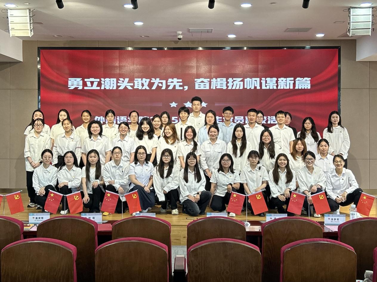6月19日,外国语学院举办了以“勇立潮头敢为先,奋楫扬帆谋新篇”为主题的2025届毕业生党员离校教育活动。出席本次活动的有外国语学院党委书记杜鹃、学院党委副书记伊莉、学生支部书记赵磊、孟娣(主持工作)、吴多发,党员校友代表陈琛、熊乐斌,毕业班辅导员朱心怡和易贤恒,以及全体毕业生党员。本次活动由外国语学院党委组织委员刘沛雨主持。