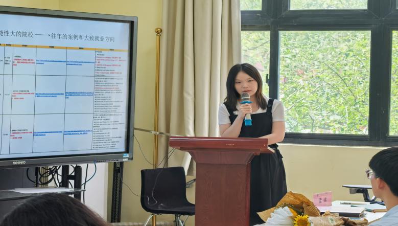 随后,三位优秀校友结合自身经历为大家分享留学经验。吴羽栖详细介绍了从确定留学目标国家、选择专业到准备申请材料的全过程;施良宇分享了语言考试备考技巧,并提醒同学们要提前了解目标院校的申请要求和时间节点;许军敏生动讲述了申请过程,让在场同学对留学有了更直观的认识,她表示同学们要在过程中积极进取,充分挖掘自身潜力。