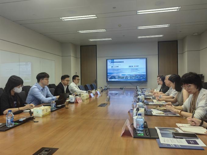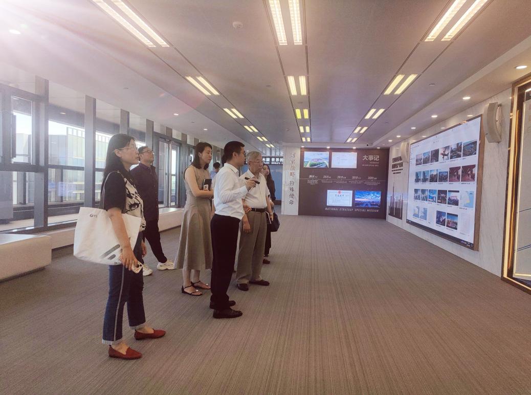 抵达公司后,袁健茗经理热情接待了走访团队,并带领众人参观公司展厅。在展厅内,通过视频介绍、3D模型展示等方式,袁经理详细讲解了临港新片区的战略定位、产业布局及未来发展规划。也介绍了公司在区域建设中发挥的重要作用。